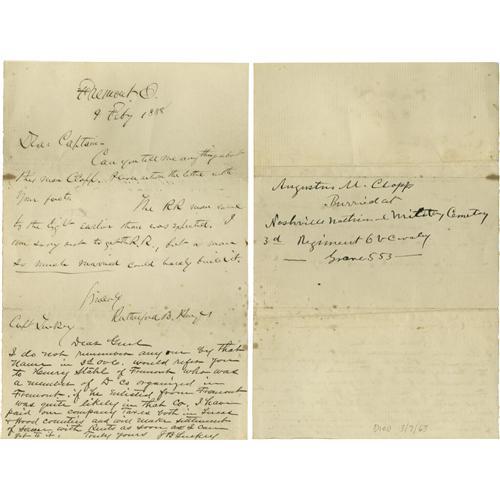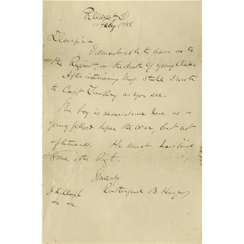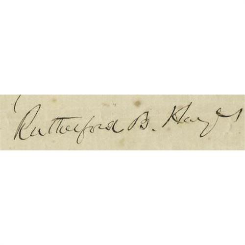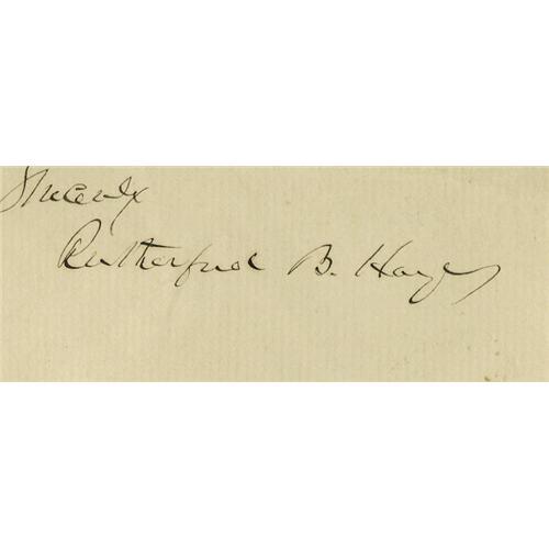 <B> Two Rutherford B. Hayes Autograph Letters Signed,</B></I> "<I> Rutherford B. Hayes</B></I>". The first, one page, 5.5" x 8.5", Freemont, Ohio to a Captain Luckey, formerly of the 3rd Ohio Volunteers. Former President Hayes, himself a Civil War veteran, here seeks information about a missing Union soldier. The letter reads, "<I> Can you tell ma anything about this man Clapp. Please return the letter with your facts. The R.R. man came by eight earlier than was expected. I am sorry not to get the R.R., but a man so much wearried (sic) could barely build it</B></I>". The verso of this letter, indeed, contains information on Clapp as requested and states that he is buried at the Nashville Military Cemetery. Light stains, minor split on one crease, else Fine condition. The second letter, one page, 5.5" x 8.5", Freemont, Ohio, July 11, 1888 to J.L. Clapp. It reads, "<I> I am not able to learn as to the Regiment or the death of young Clapp. After interviewing Maj. Stall I wrote to Capt. Luckey as you see. The boy is remembered here as a young fellow before the war but not afterwards. He must have found some of the Regiment</B></I>". Light browning and, again, a small split on one fold. Fine condition. <BR><BR><B>Important notice