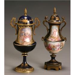 Two SFvres-Type Ormolu Mounted Covered Urns