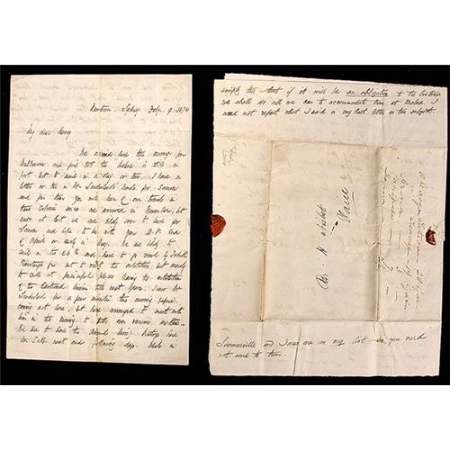 <Our item number 140103><B>Two Samoan Missionary Letters.</B> Two autograph letters written by George Turner, a missionary in Samoa, total of 6 pp. One is datelined Malua, Samoa, 1848, April 4, to the Rev. Henry Nisbet, missionary on Vaiee, another island in the Samoan group, thanking him for the box and letters, discussing death of "our dear Bro Britten," arrival and departures on the island, mentioning the indecisive character of "Mac," and enquiring about the location of the next general meeting. The second is datelined Newtown, Sydney, 1874, to the Rev. Dr. Nisbet on Malua (Samoa), describing travels, other missionaries he has met, an adress to the Sunday School, and a forthcoming trip to Tahiti. Two rare examples of inter-island mail. Very good; light soiling. <BR>Estimated Value $600 - 800. <BR><BR>Our item number 140103<BR><IMAGES><P ALIGN="CENTER"><IMG SRC="http://www.goldbergcoins.net/liveauction/49jpegs/140103.jpg"> </P></IMAGES>