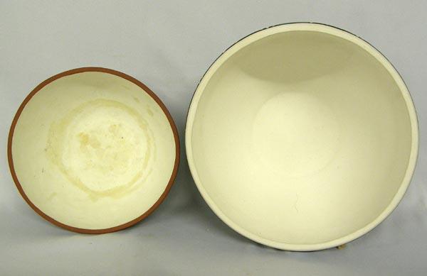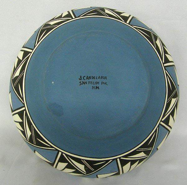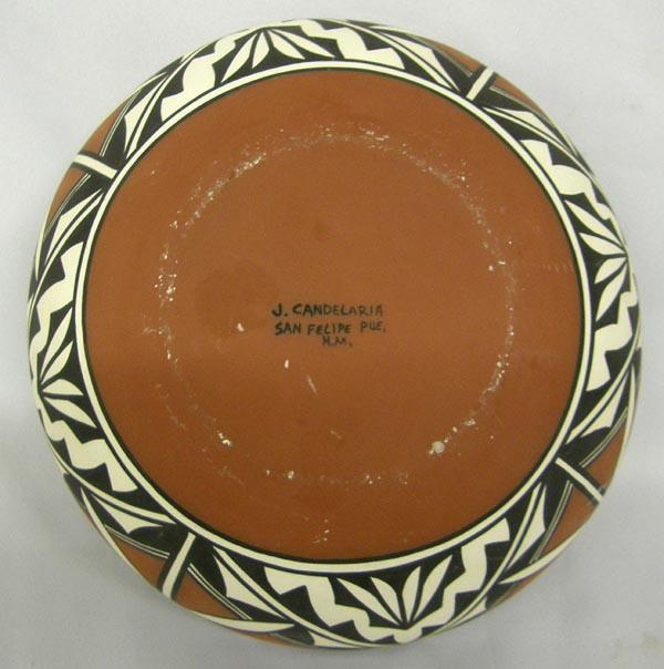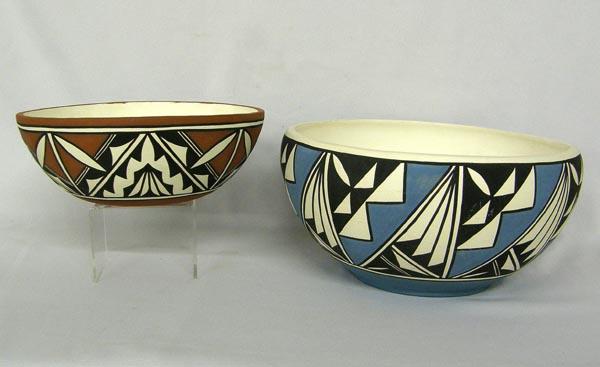 Two San Felipe Hand Painted Bowls by J. Candelaria. Largest measures approx. 6''Hx12''W. SHI $45.