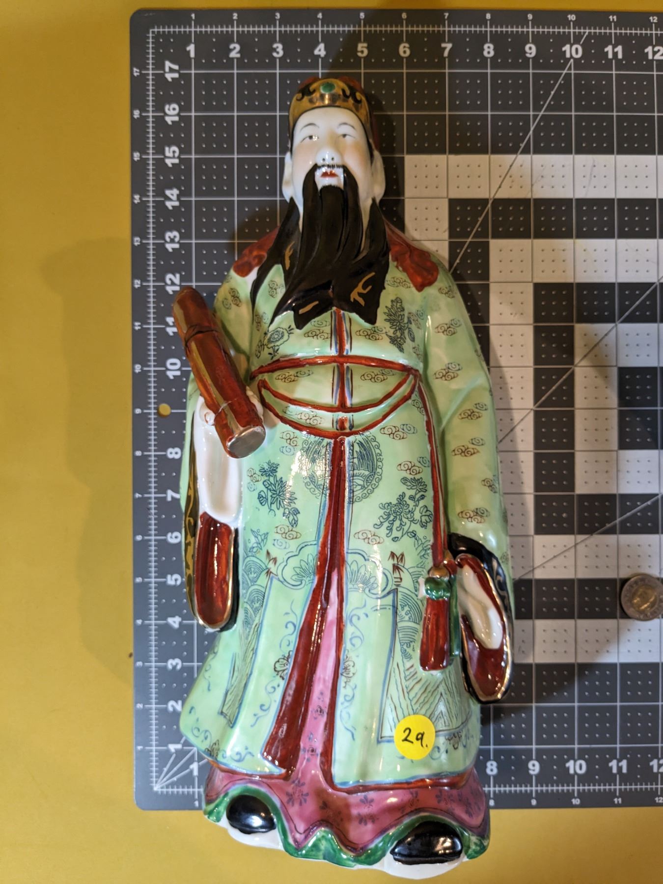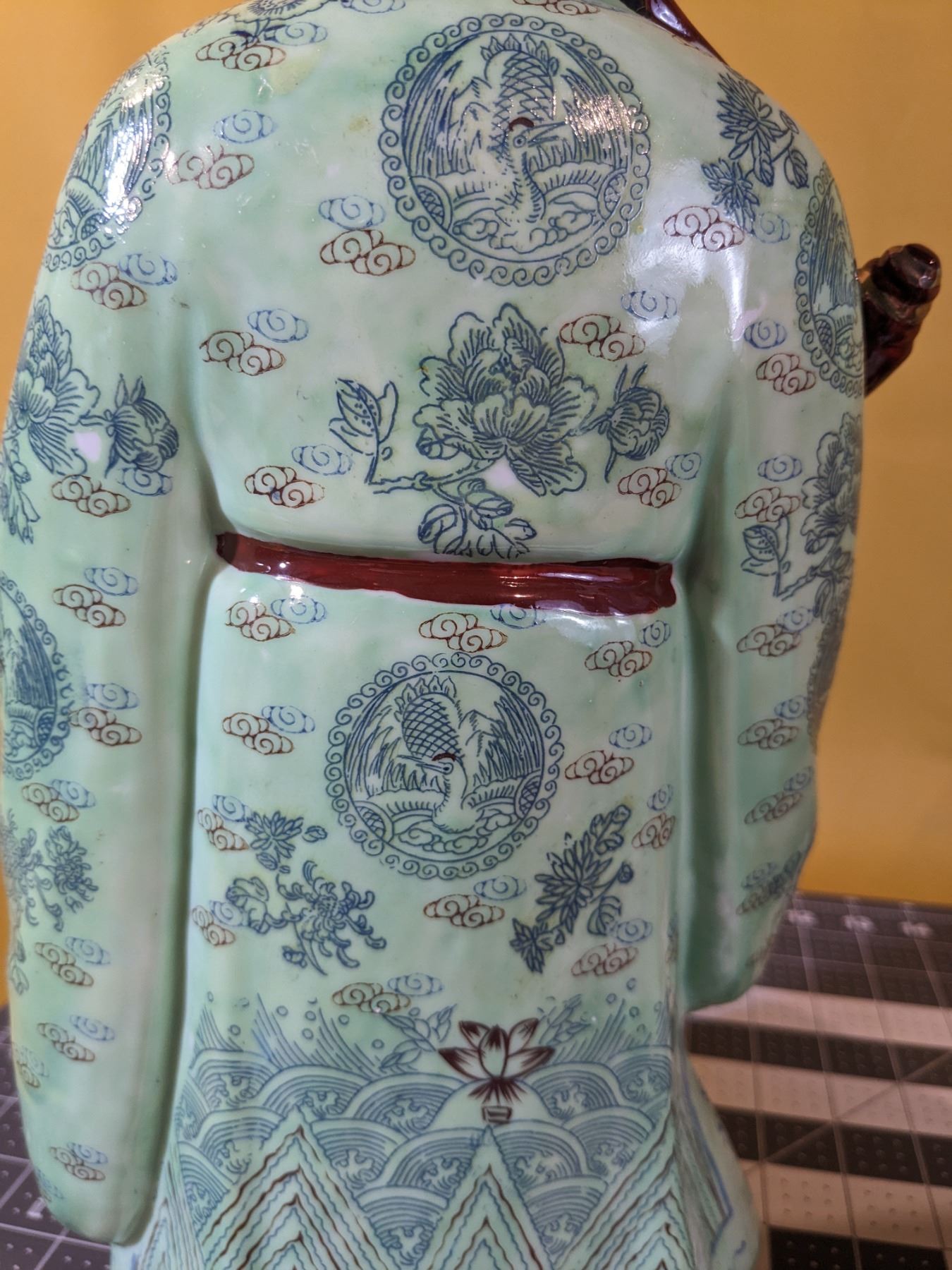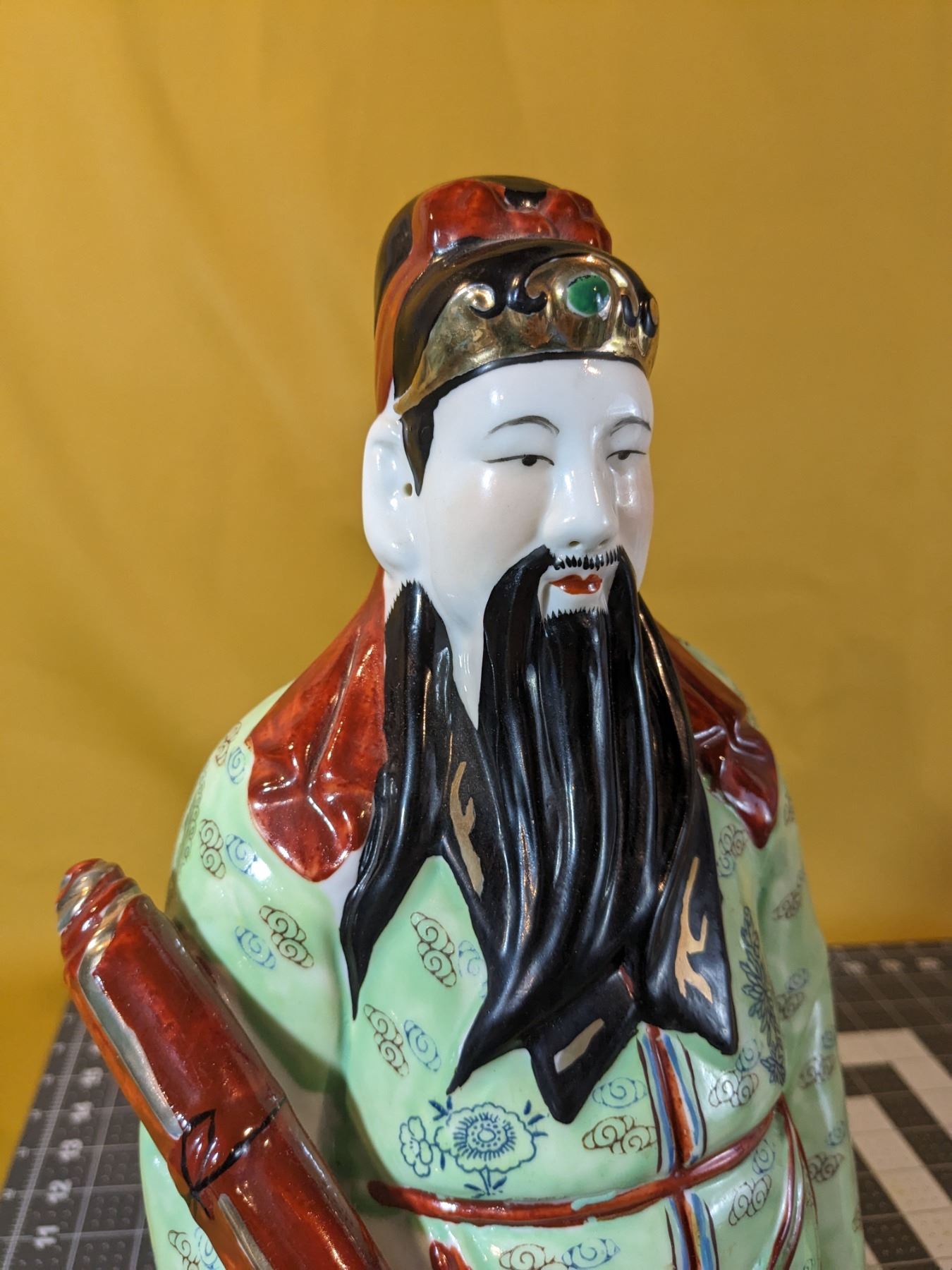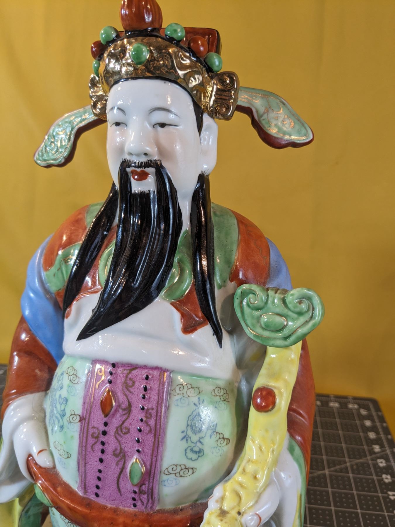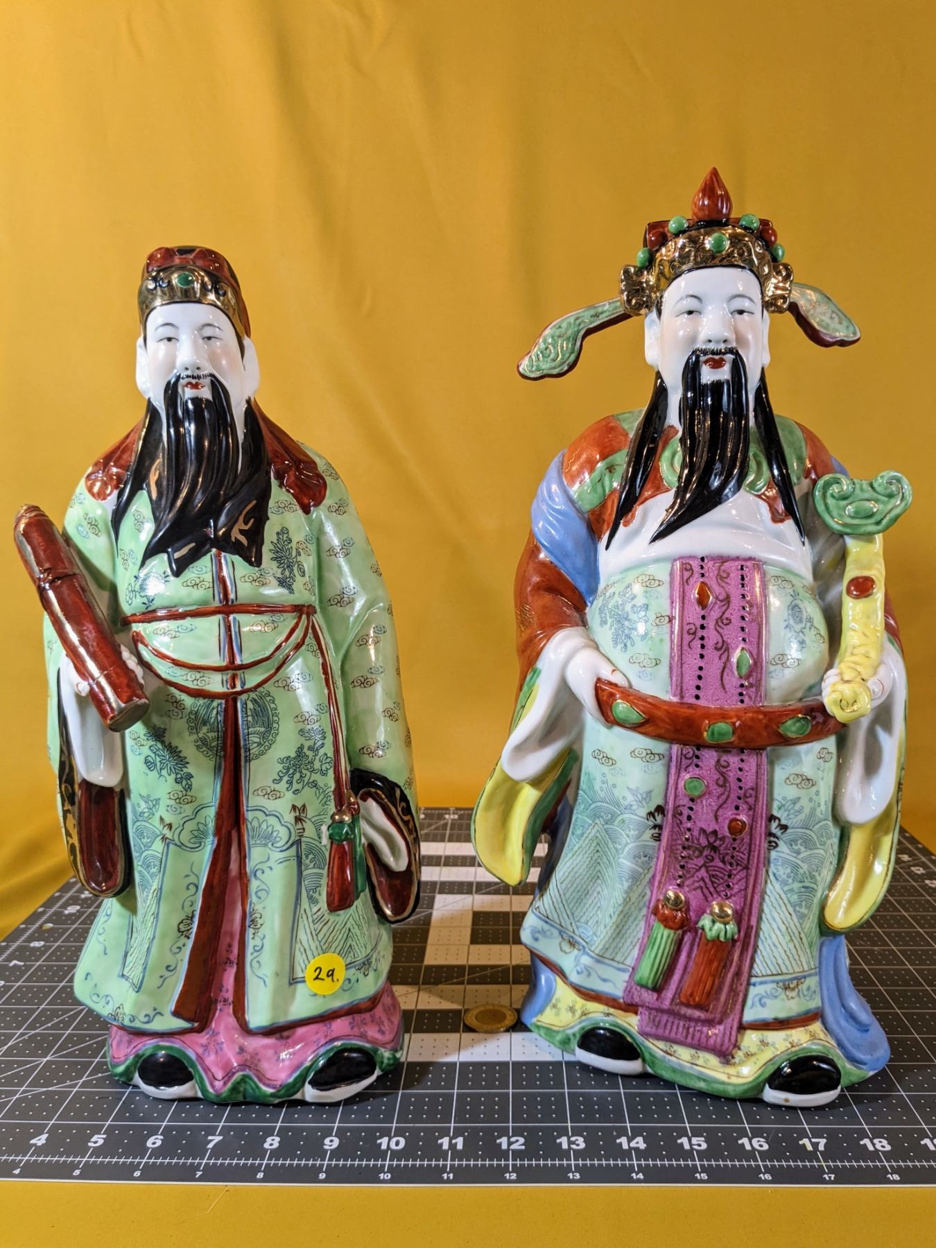 Two Sanxing dieties. Very colorful; mint condition. Marks on bases. About 16 in tall and 7 in wide.