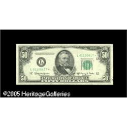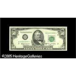 <B>Two Scarce $50 1950E Stars.</B></I><BR>Fr. 2112-B* $50 1950E Federal Reserve Note. Choice AU<BR>Fr. 2112-L* $50 1950E Federal Reserve Note. Extremely Fine.<BR> 2 notes Lot:16270