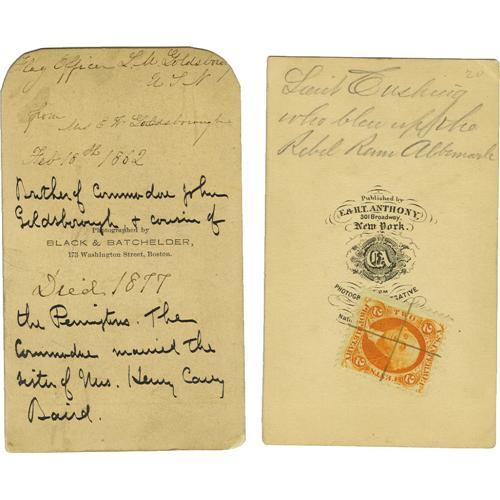 <B>Two Scarce Naval Officer <I>Cartes de Visite.</B></I></B></I> Commodore John Goldsborough (light soiling, top corners rounded) and Lieutenant Cushing, an Anthony in beautiful shape.<BR><BR><b>Shipping:</b> Small Flat (<a target="_blank" href="http://www.heritageauctions.com/common/shipping.php">view shipping information</a>)