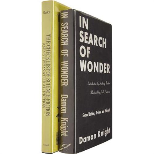 <B>Two Science-Fiction Reference Books by Damon Knight and E. F. Bleiler.</B></I> Includes the following:<BR><B><I>In Search of Wonder.</B></I></B></I> (Chicago: Advent Publishers, 1967), second edition, 306 pages, light gray boards, 8vo, dust jacket. Condition (book/ dj): very good/ good.<BR><B><I>The Checklist of Science-Fiction and Supernatural Fiction.</B></I></B></I> (Glen Rock, New Jersey: Firebell Books, 1978), first edition, 266 pages, black boards, 8vo, dust jacket. Condition (book/ dj): very good/ very good.<BR><BR><b>Shipping:</b> Books & Catalogs (<a target="_blank" href="http://www.heritageauctions.com/common/shipping.php">view shipping information</a>)