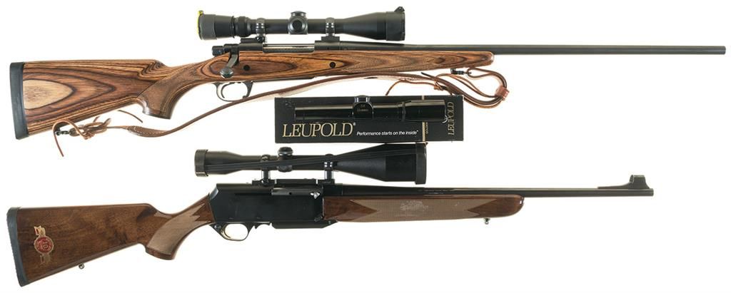 A) With mounted Leupold Vari X III 3.5-10 x 40 mm scope, Burris 3x long eye relief scope and sling.