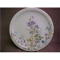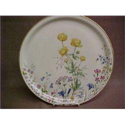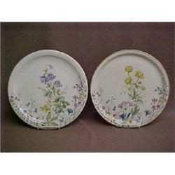 Two porcelain chargers with wildflower design on cream colored ground, "Wiesengrund und Bergeshohn" Krautheim, Selb Bavaria Germany, mid to late 20th C., 12 1/2" d.
