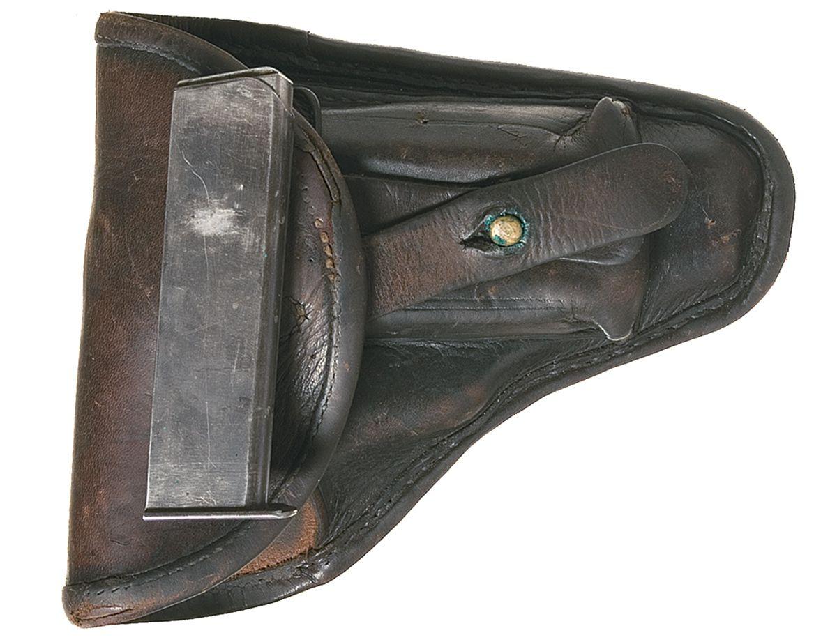 A) Standard markings and features with magazine. Complete with one spare magazine and a brown leather holster stamped inside the flap with the "Czech standing Lion/ 1937/ 400".