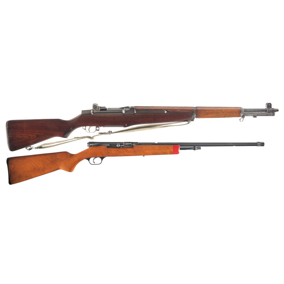 Manufactured between 1938 and early 1980s. With painted red forearm tip and two 1 inch tip off scope mounts muzzle has been threaded with thread protector and magazine to be shortened.