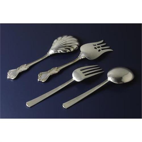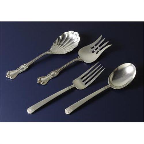 <B>Two Sets of American Silver Serving Pieces</B></I><BR><BR>Various makers, American<BR>Twentieth century<BR>Silver<BR>Various marks<BR>9.13 inches long<BR>12.12 Troy ounces<BR><BR>Comprising a serving spoon and fork by Rogers, Lunt & Bowlen Co. in the <I>Regency</B></I> pattern, monogrammed <I>HMP</B></I>; and a serving spoon and fork by Reed & Barton in the <I>Marlborough</B></I> pattern.<BR><BR><b>Shipping:</b> Requires 3rd Party Shipping (<a target="_blank" href="http://www.heritageauctions.com/common/shipping.php">view shipping information</a>)