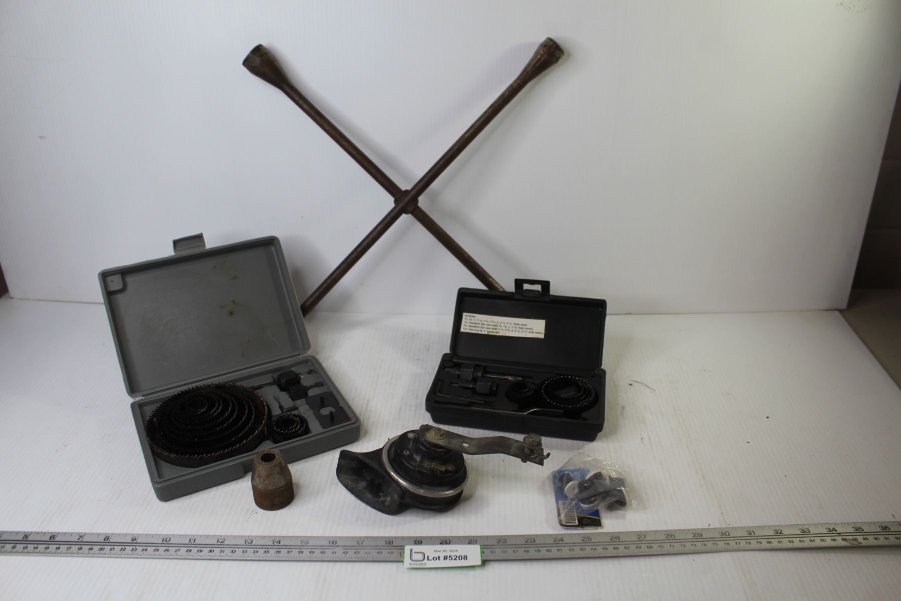 Two Sets of Hole Saws - Tire Wrench - Car Horn - Misc. Items