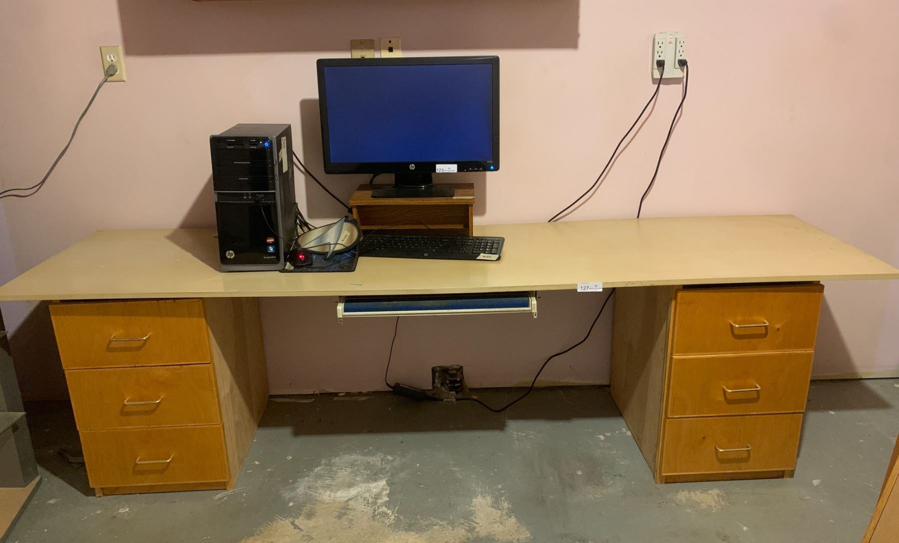 Two Sets of Office Drawers with Desk Tabletop. Drawers measure 27" x 17" x 24". Desk top is unattached and measures 97" x 26".