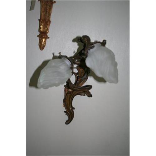 Antiques french wall sconces circa 1890's bronze re-wiried for U.S. Sockets. Flame shades.