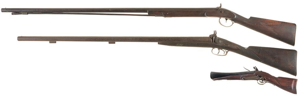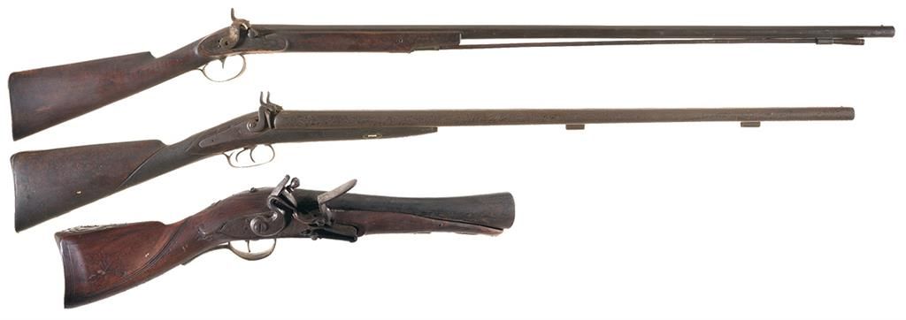 Two Shotguns and One Blunderbuss -A) "W. Hatch" Single Barrel Percussion Fowler