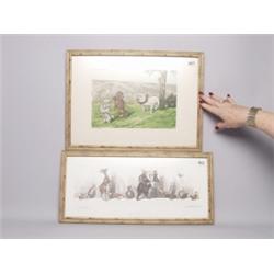 Two Signed French Colored Engravings Animals & Dogs......water staining.