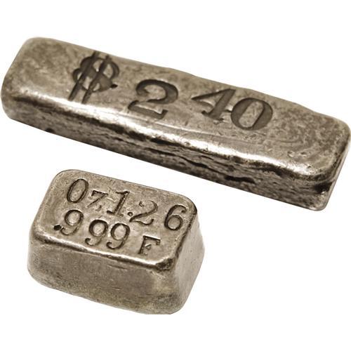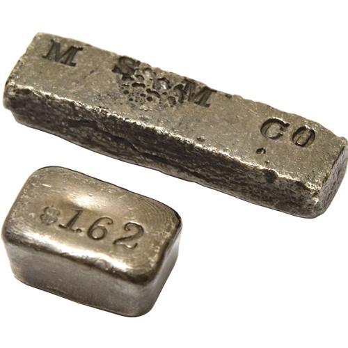 Two Silver Ingots. One is crudely stamped "M S M Co," a