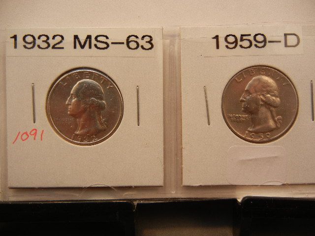 Two Silver Washington Quarters 1932 Ms-63 & 1959-D