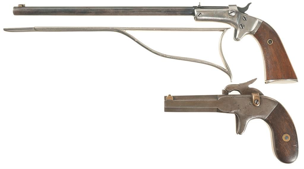 Two Single Shot Pistols -A) Stevens Offhand No. 35 Single Shot Pistol with Matching Stock