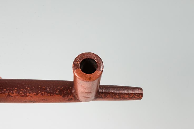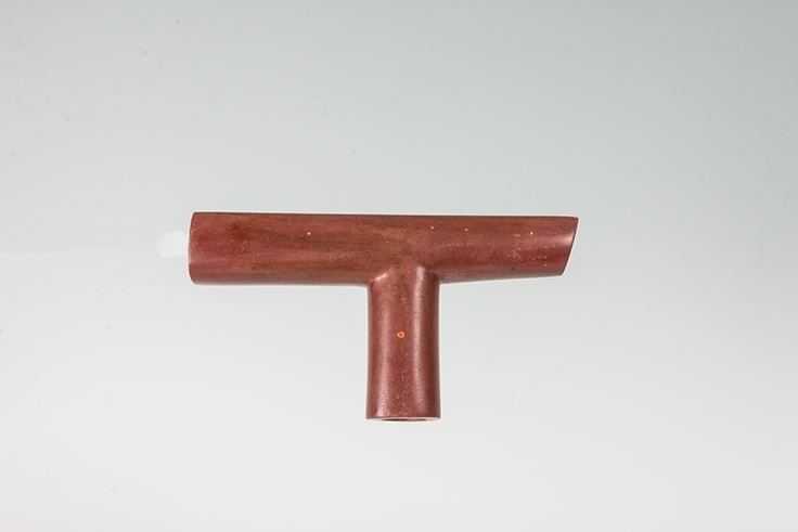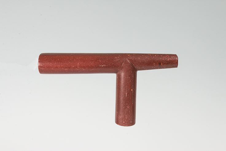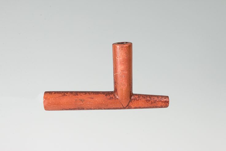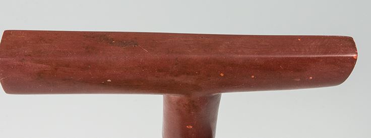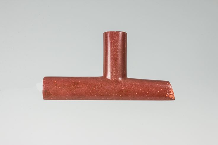 Two Sioux Pipebowls. 1) 6" long x 3 ¼" tall, circa 1880s. 2) 6 ½" x 3 ¾", circa 1900. Both carved of two-tone catlinite pipe stone.