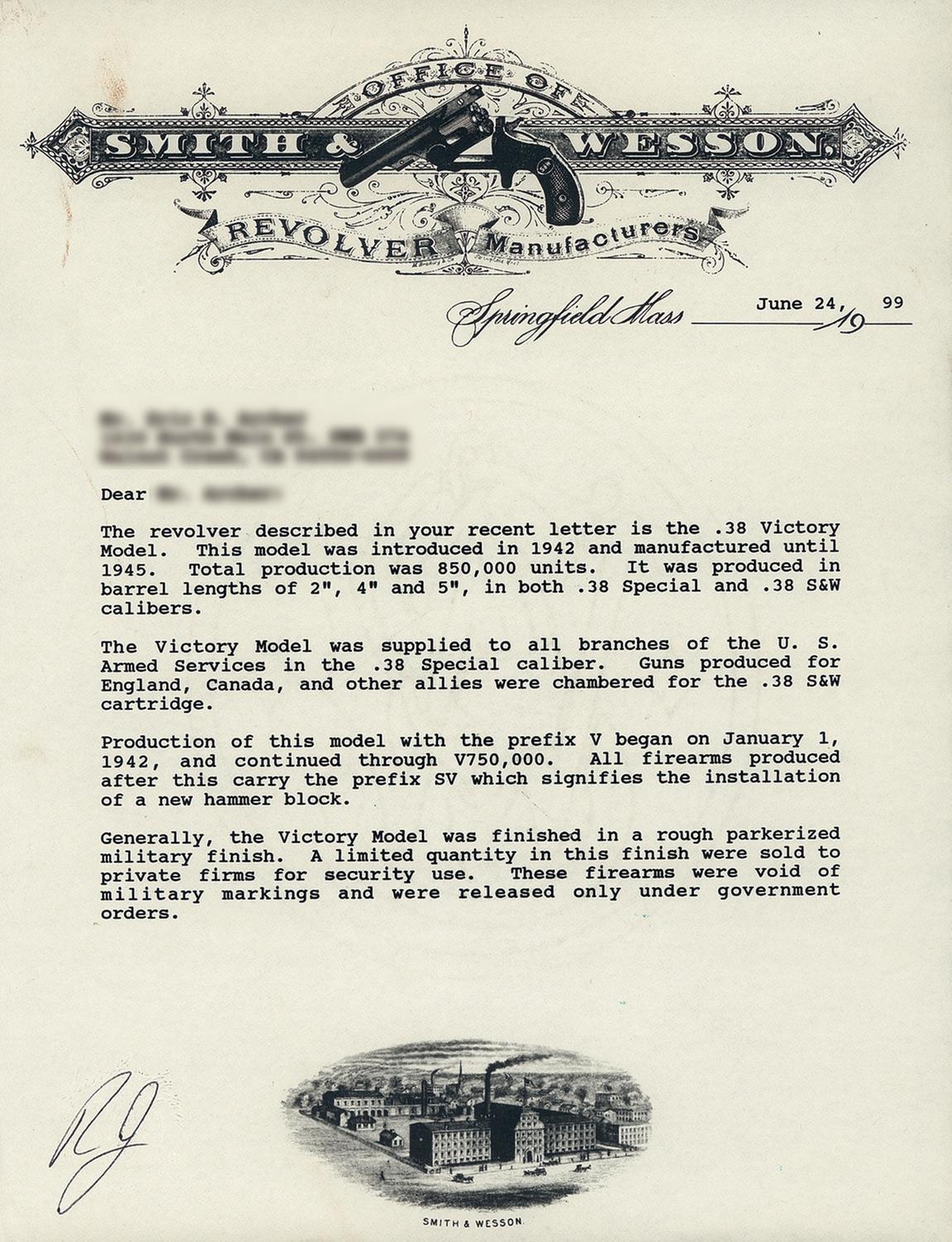 B) Scarce U.S. Navy Contract Smith & Wesson Victory Model Double Action Revolver with Factory Letter