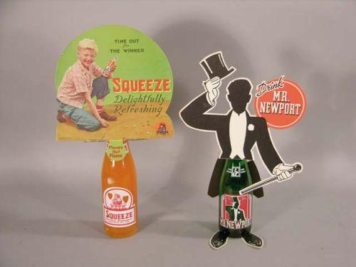 Two soda toppers with bottles. 1. Squeeze. 2. Mr. Newport, Ex. cond.