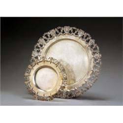The smaller tray impressed on underside T N and BOGOTA within a reserve surmounted by a knight's helmet; the larger tray impressed TRP within a shield. The smaller tray with repairs to border; the larger tray with breaks to border.