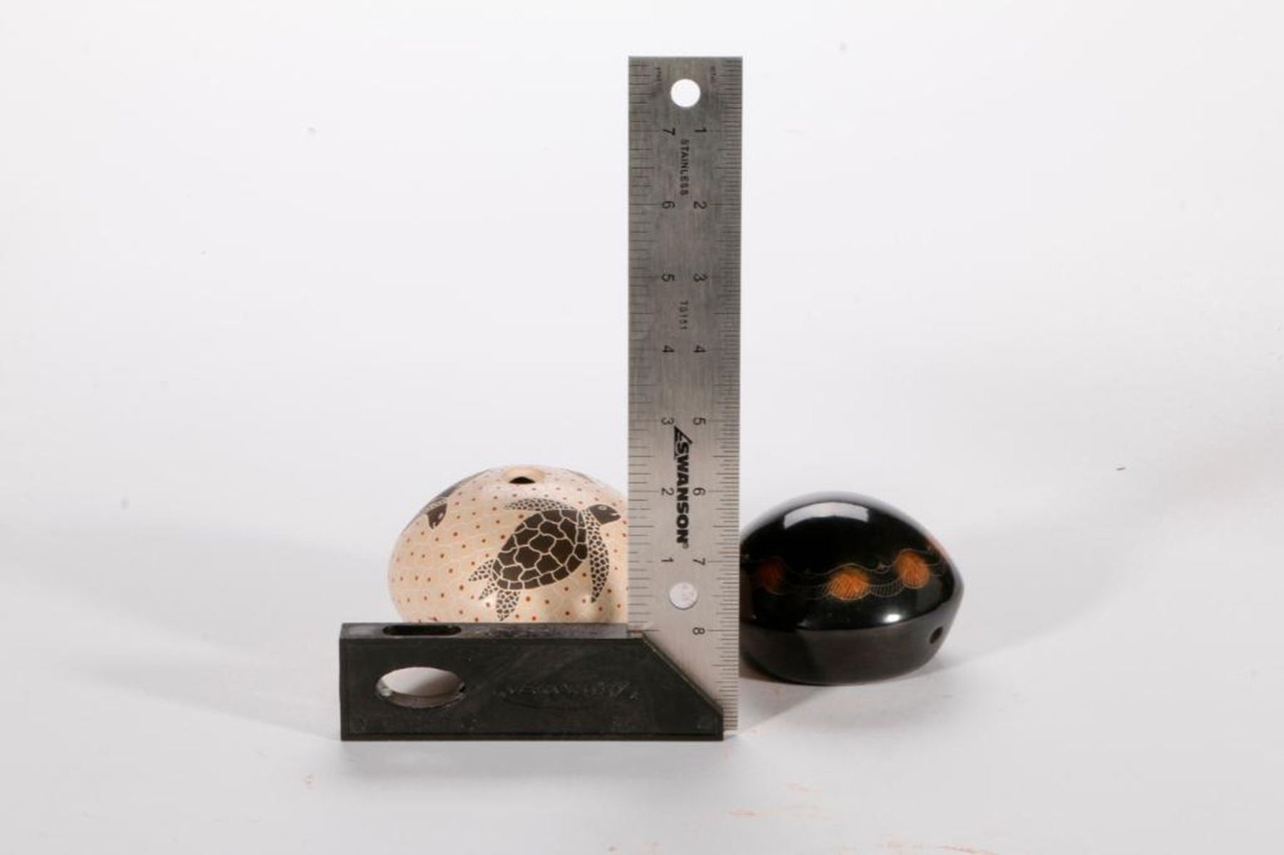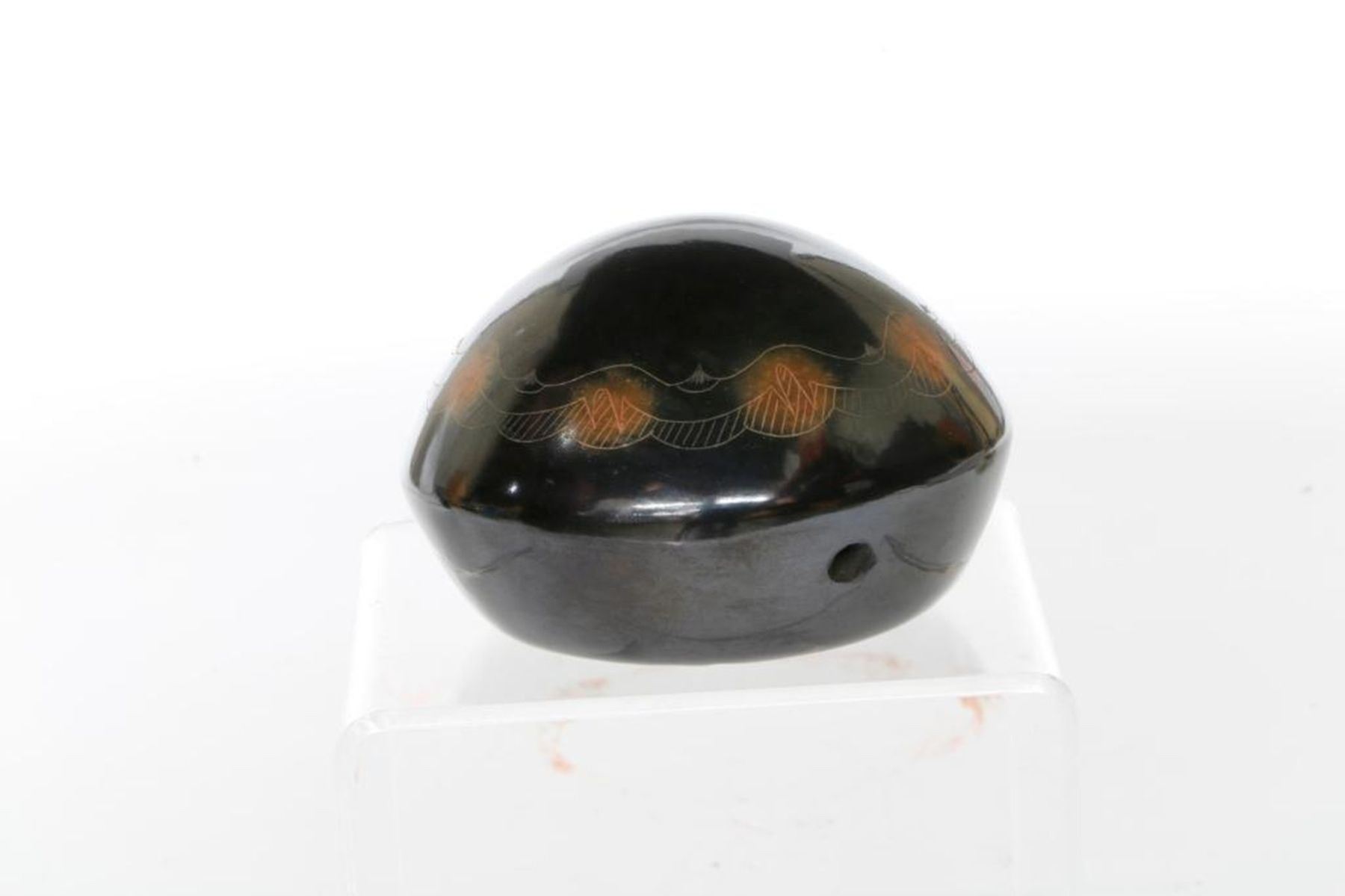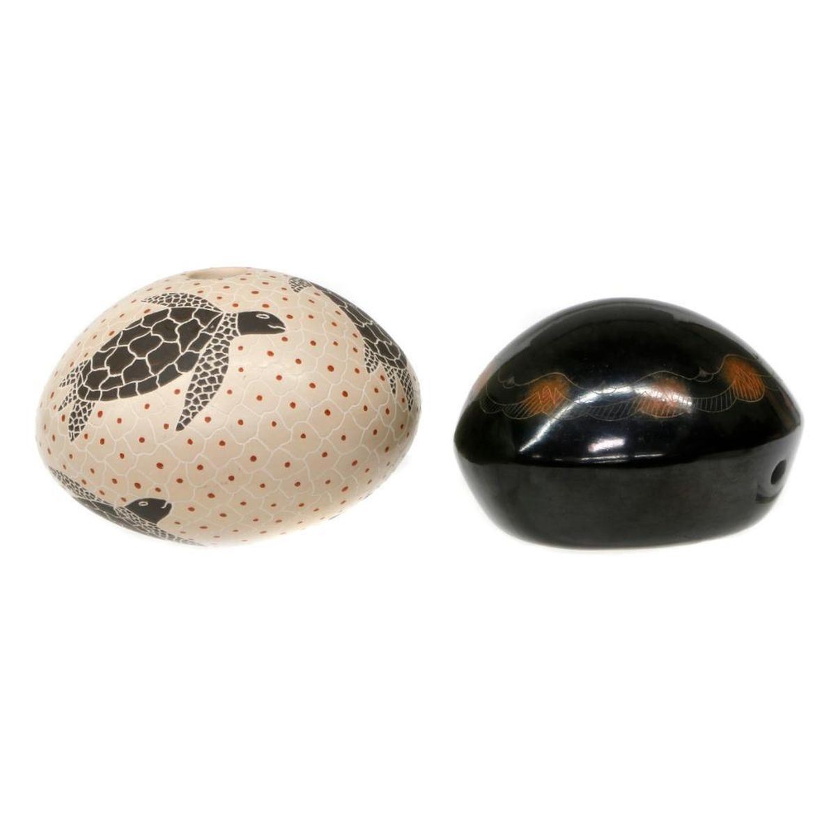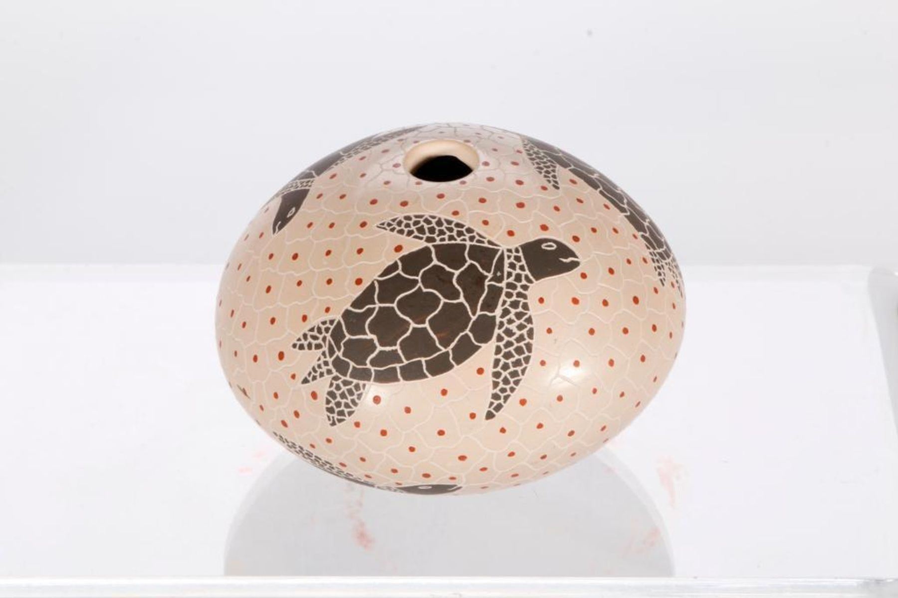 Two Southwest seed jars, a San Ildefonso blackware example by Than-Moo-Whe (Barbara Gonzales), and a Mata Ortiz pictorial jar by Oscar Ramirez