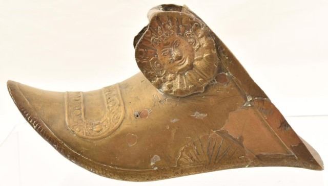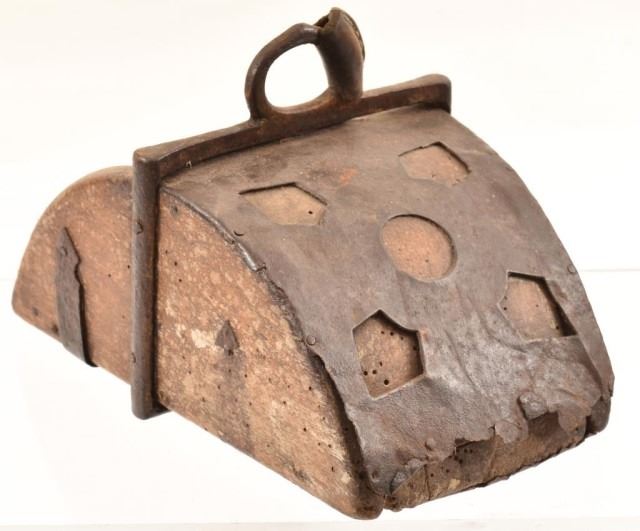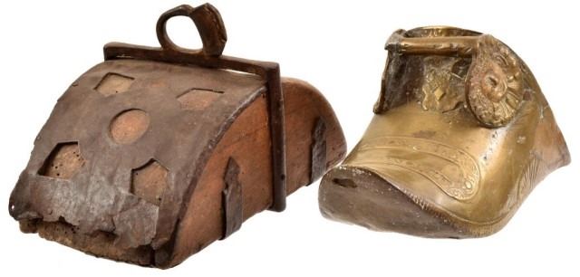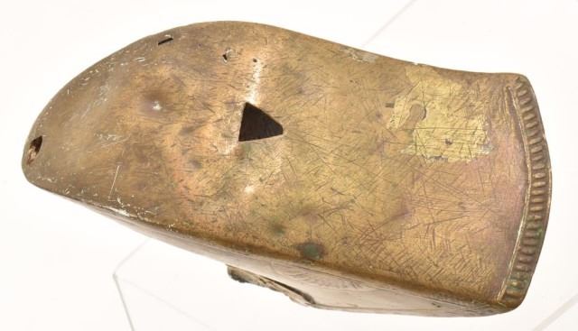Brass Spanish Colonial Stirrup measuring 4.75"x 5" x 9". Wood & steel framed stirrup measuring 5.5" x 5.5" x 8.5".