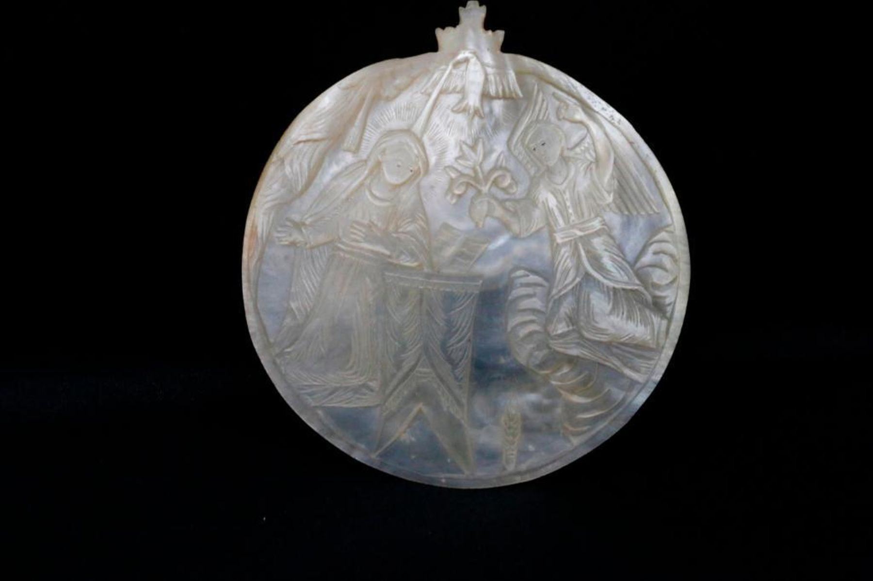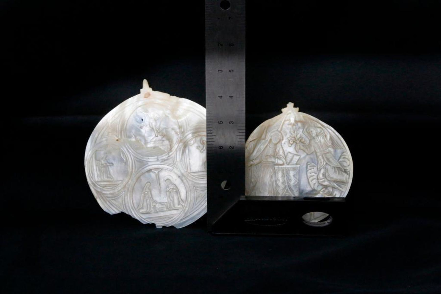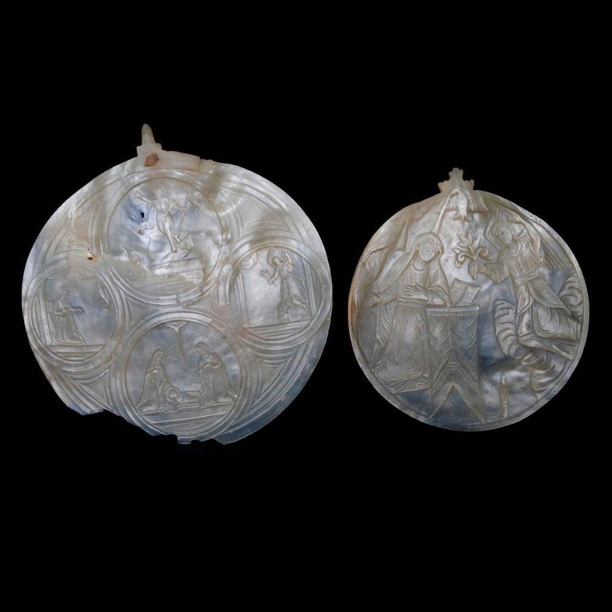 c. 19th century, one depicting scenes from the life of Jesus, the other representing the Anunciation. 6 1/2 inches x 6 1/2 and 5 1/2 inches x 5.