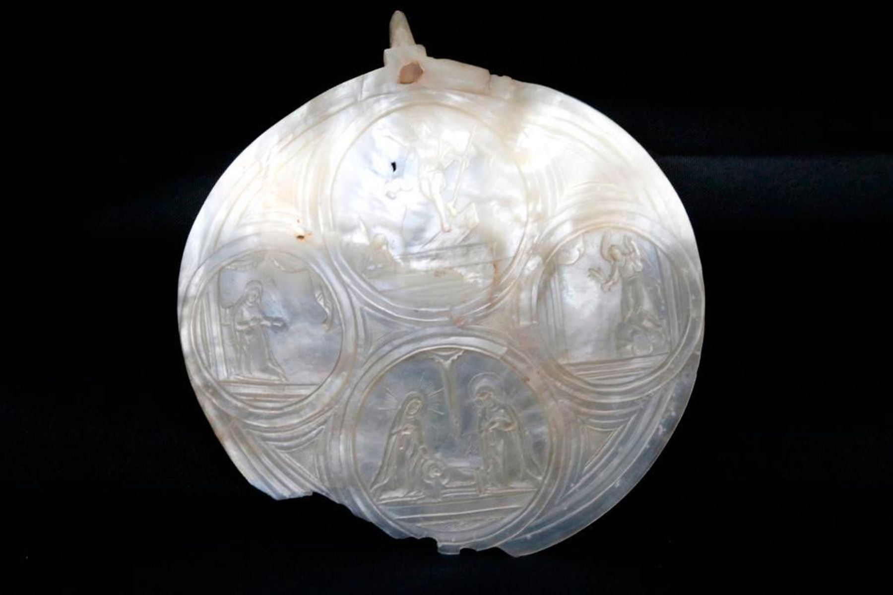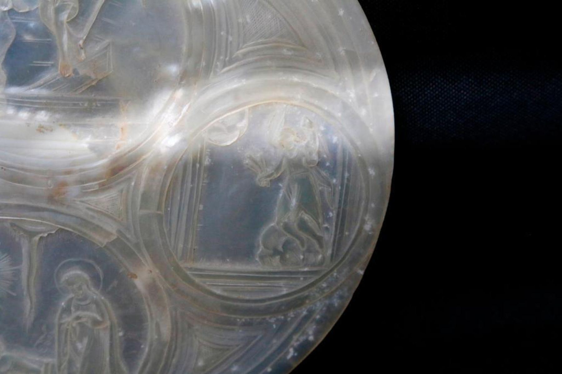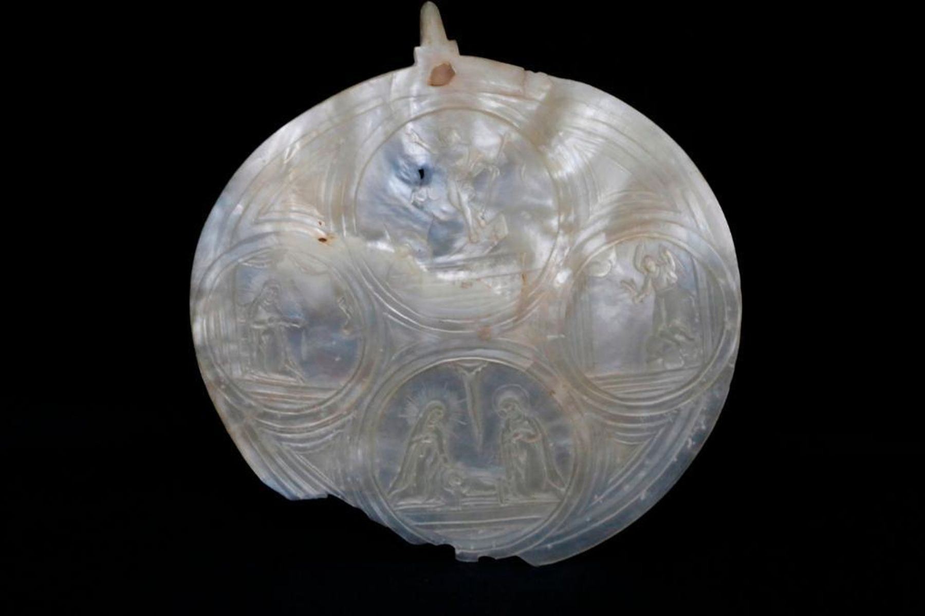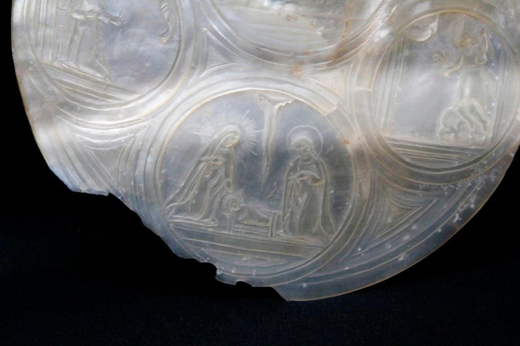 c. 19th century, one depicting scenes from the life of Jesus, the other representing the Anunciation. 6 1/2 inches x 6 1/2 and 5 1/2 inches x 5.