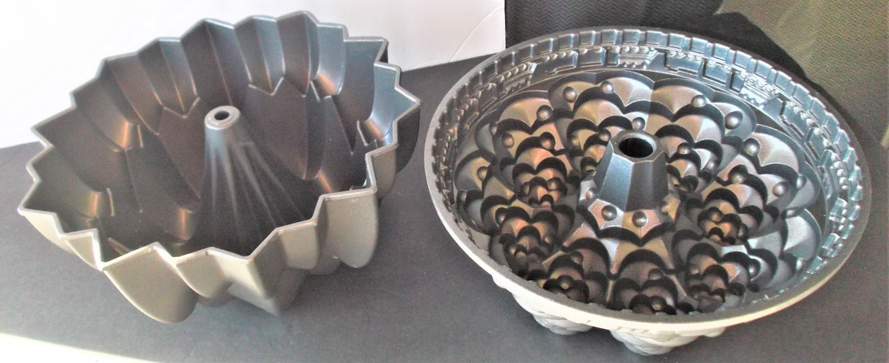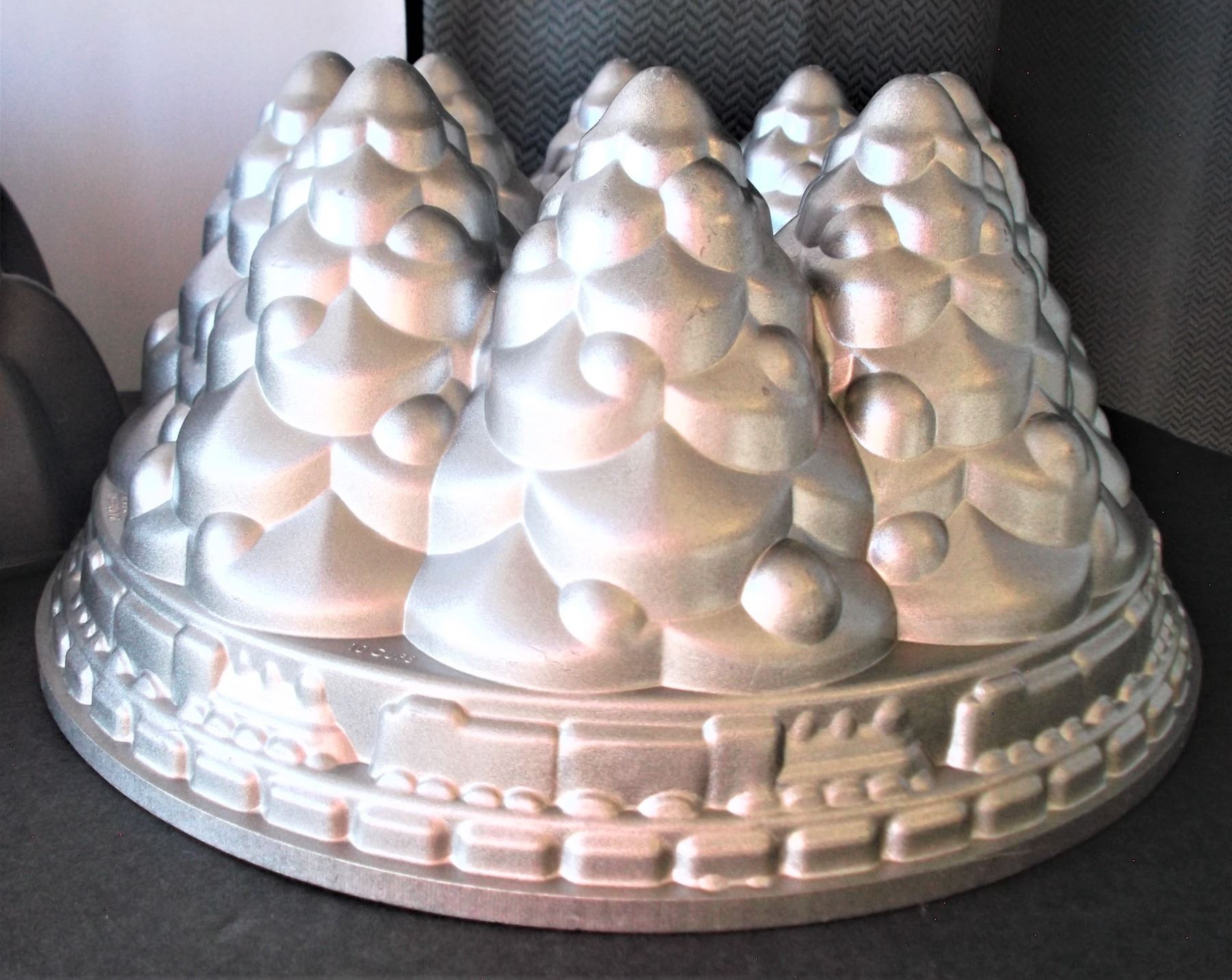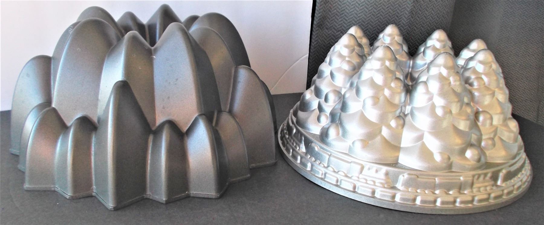 Two Specialty Bundt Cake Pans - Nordic Ware Holiday Bundt Tree Pan and Wilton Dimensions Cascade Bun