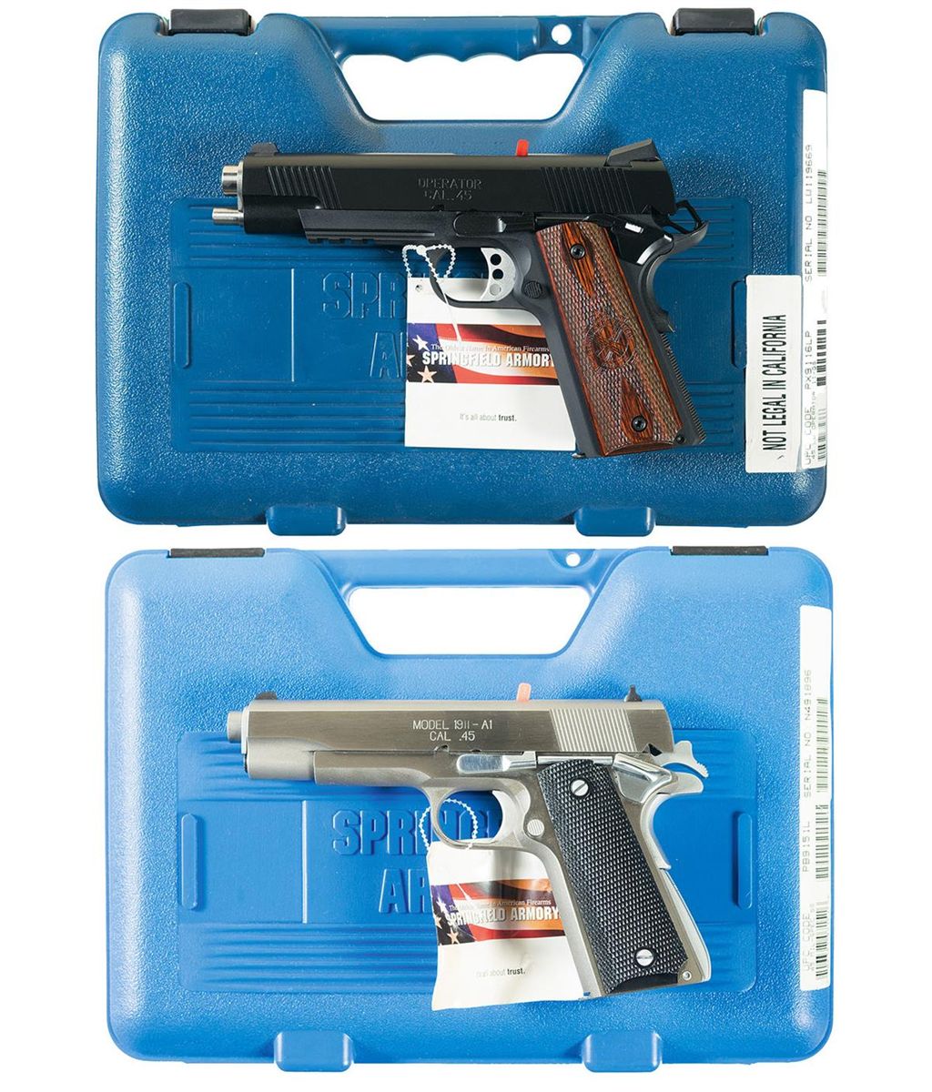 Two Springfield Armory 1911 Style Semi-Automatic Pistols with Original Cases -A) Springfield Armory 1911 Operator Semi-Automatic Pistol