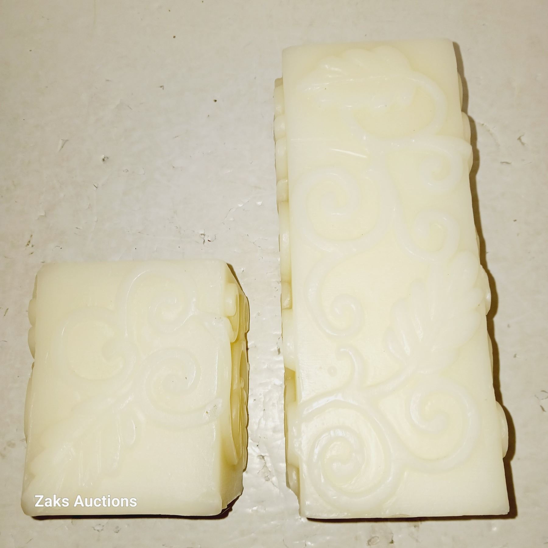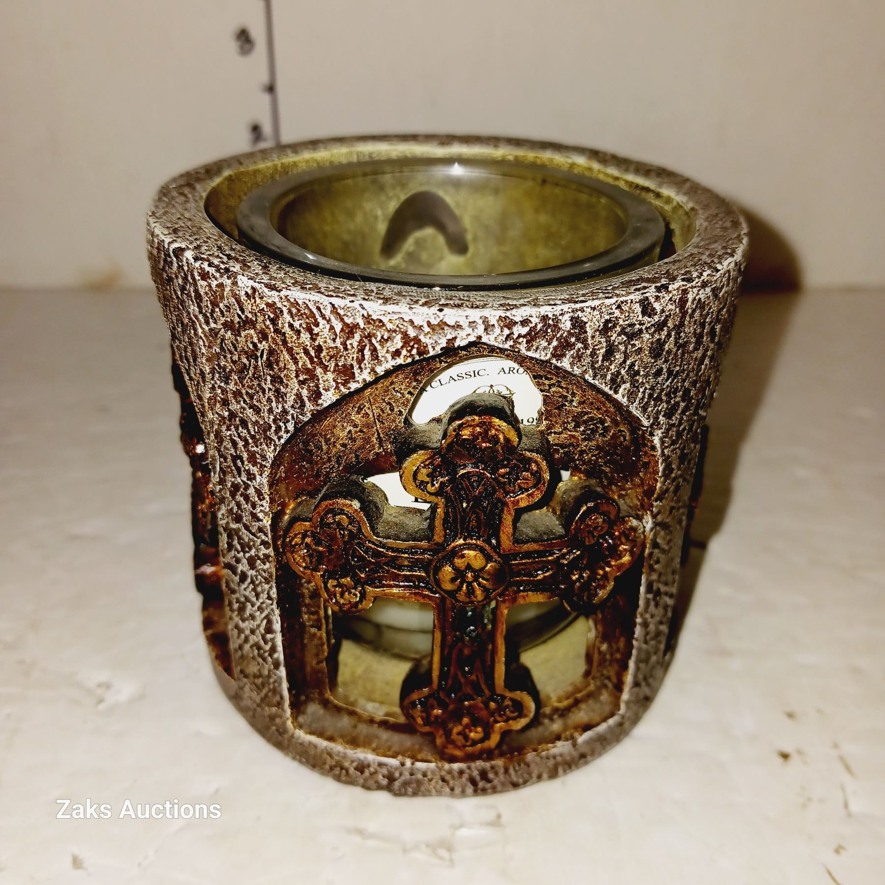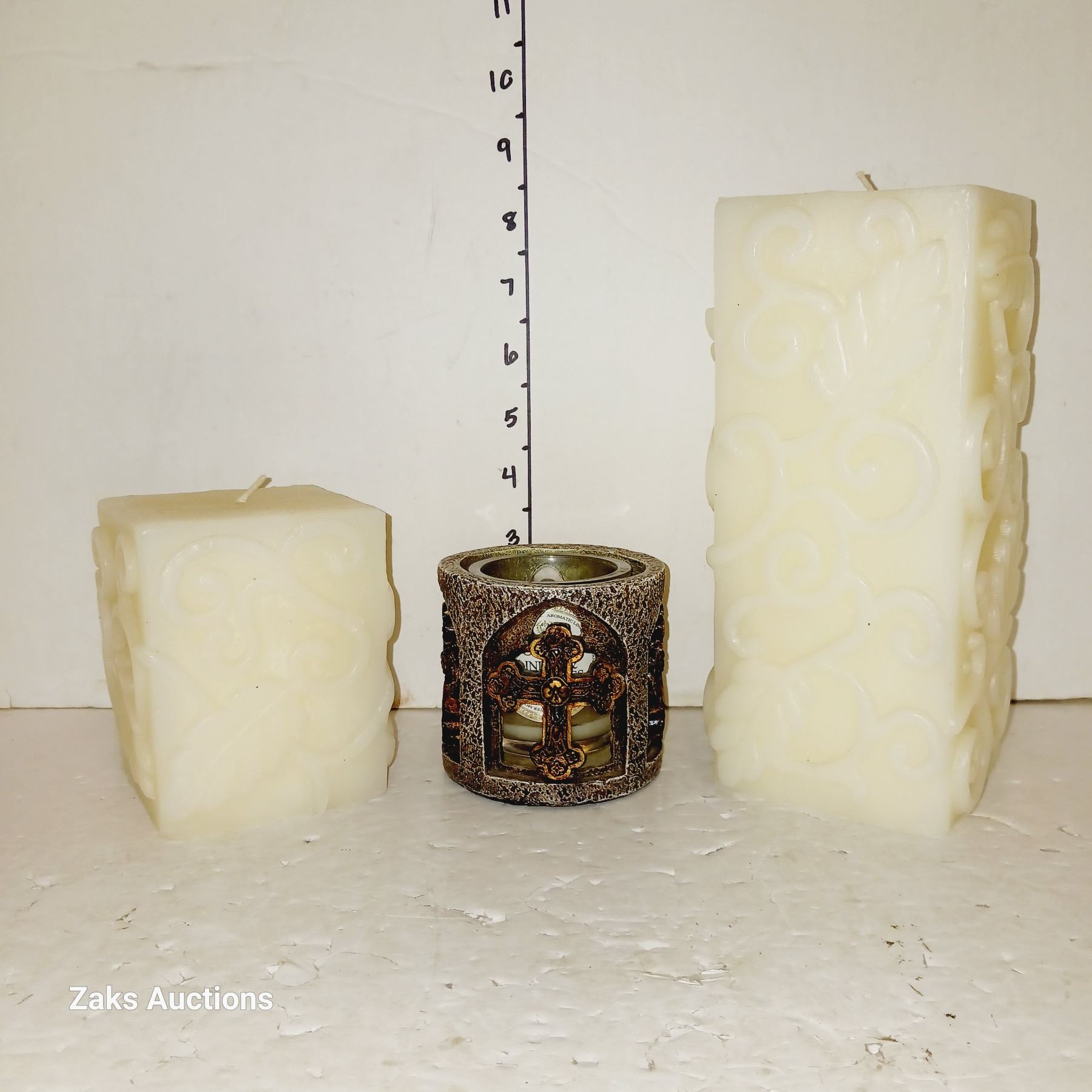 Two Square Pillar Candles & "Cross" Candle Holder