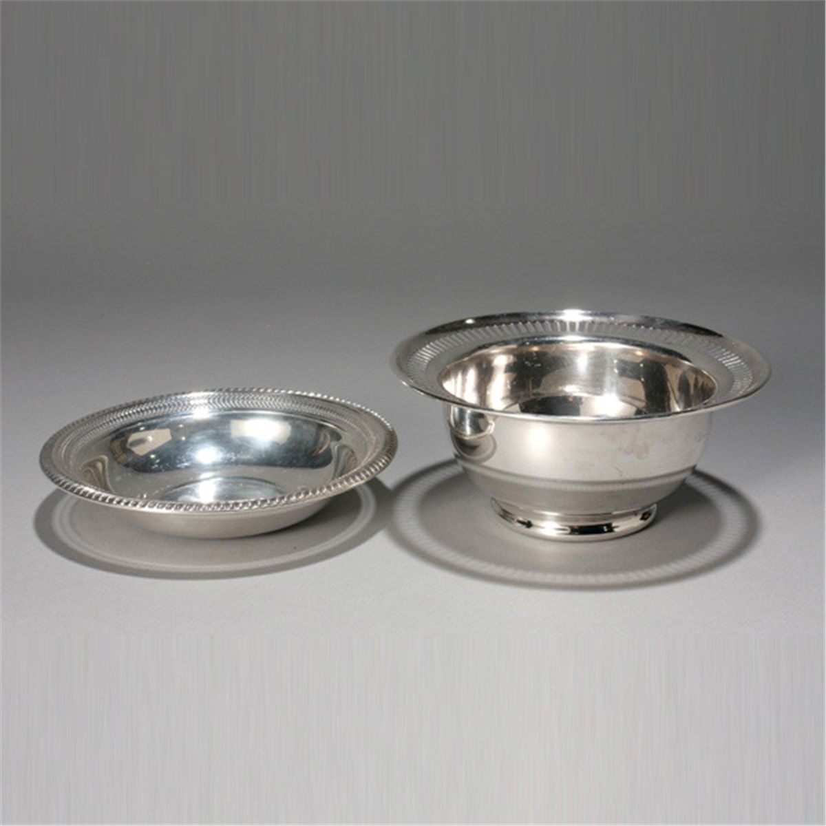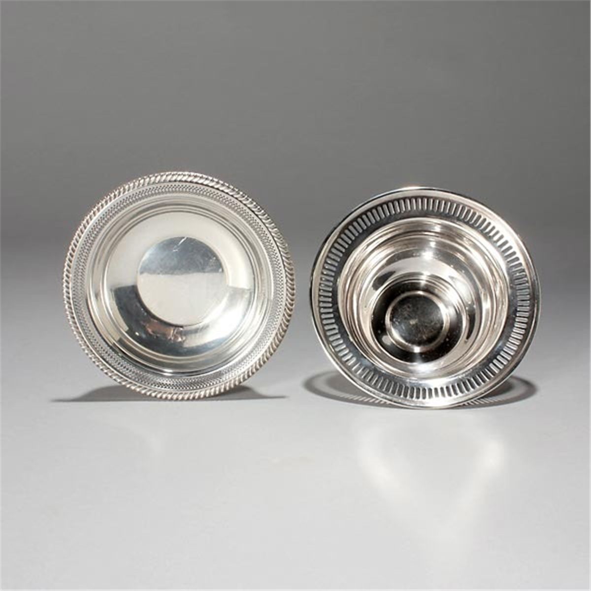 Two Sterling Bowls; a Shreve & Co. bowl with reticulated border; and a Gorham bowl #336 {Total silver weight 7.06 troy oz; diameter of larger bowl 6 inches}
