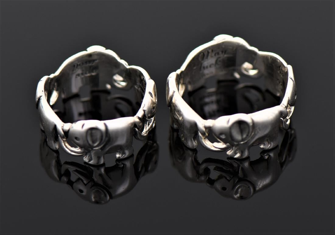 Two Sterling Silver Elephant Friendship Rings, Thailand. Ring Sizes 10, 8. Estimated less than 50 yrs old. 925 Sterling Silver consisting of 92.5% silver and 7.5% copper. Tested Positive using Nitric Acid Chemical Scratch Test, Cloth Rub Test, Smell Test, and Magnet Test. Markings of 925 or Sterling stamp. The reason silver needs to be combined with other metals is that it is very difficult to make great designs with just pure silver, which is very soft and malleable. A bit of hardness has to be introduced by adding other metals such as copper. That is why jewelers are capable of making the most intricate an complex designs with 925 Sterling Silver. Silver is one of the most valuable elements next to gold. Mexico is the leading producer of sliver, followed by the United States, Canada, Australia, Spain, Peru, and Russia. Many countries do not require their precious metal items to be stamped and therefore we test to ensure we accurately represent the product. Size and/or Weight: See Measurement Photo. (Photos Represent The Lot Condition.)