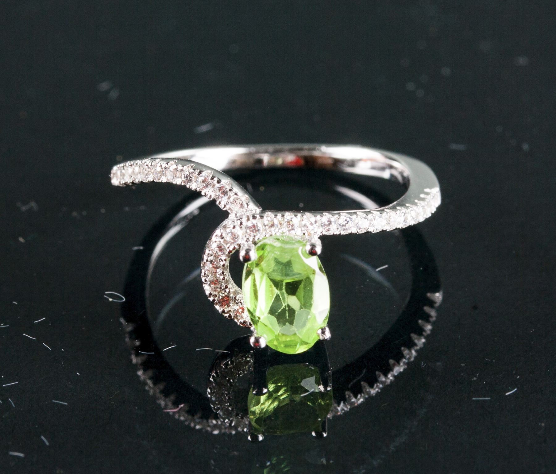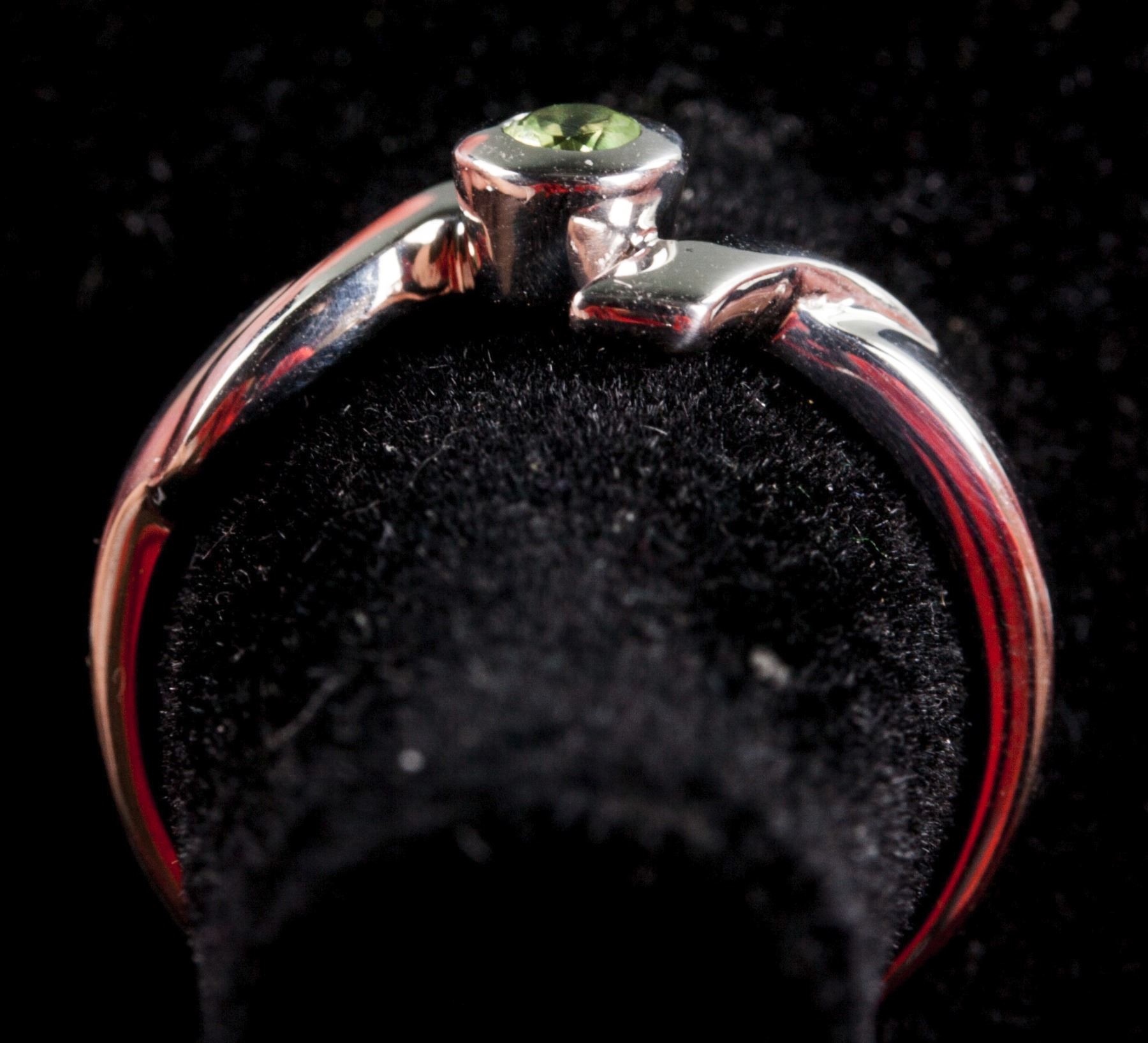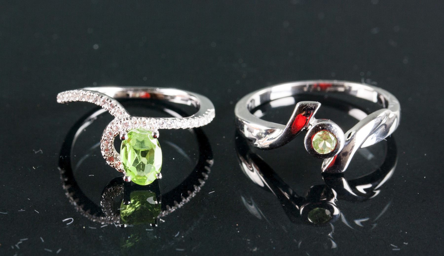 Two sterling silver rings; set with August birthstone peridot; retail value $220; D:1.6 cm, 1.93 grams, D: 1.8 cm, 2.71 grams
