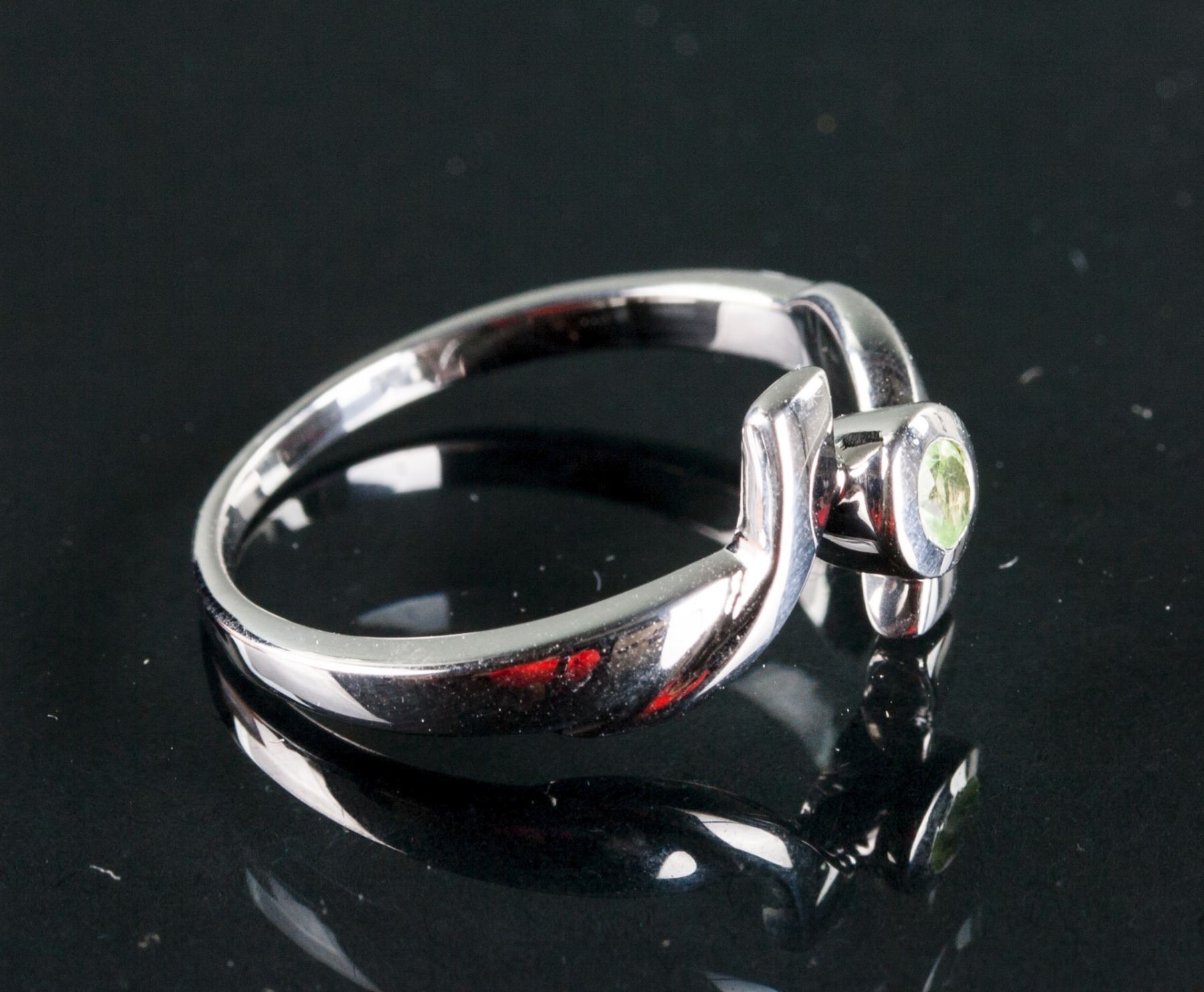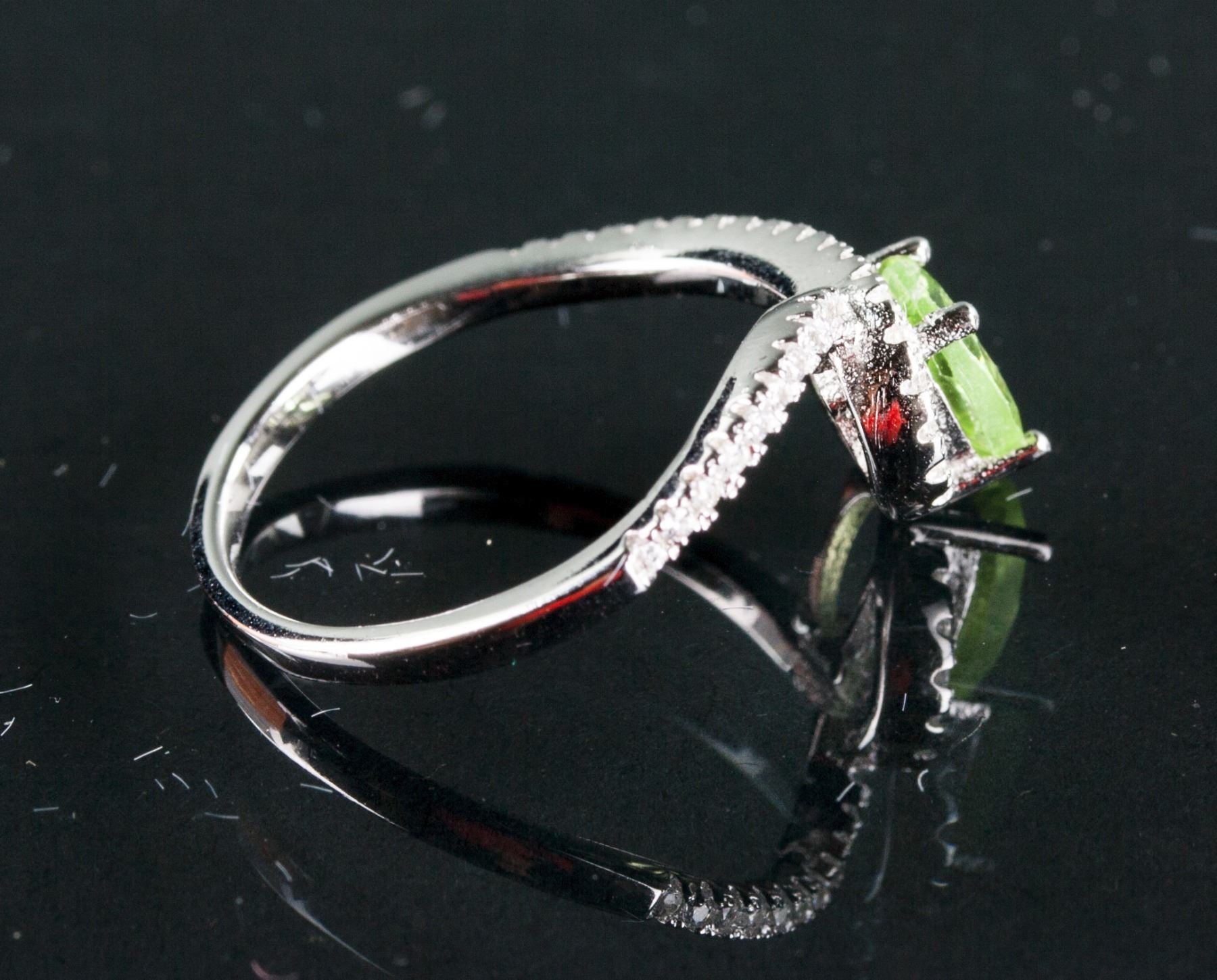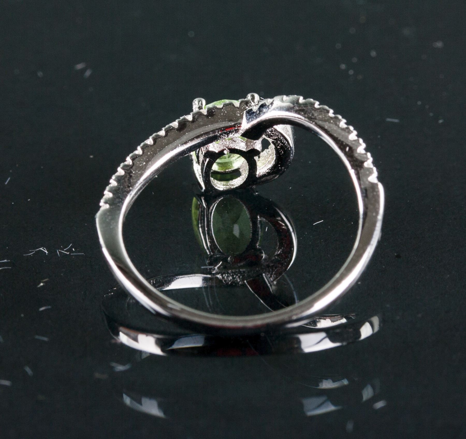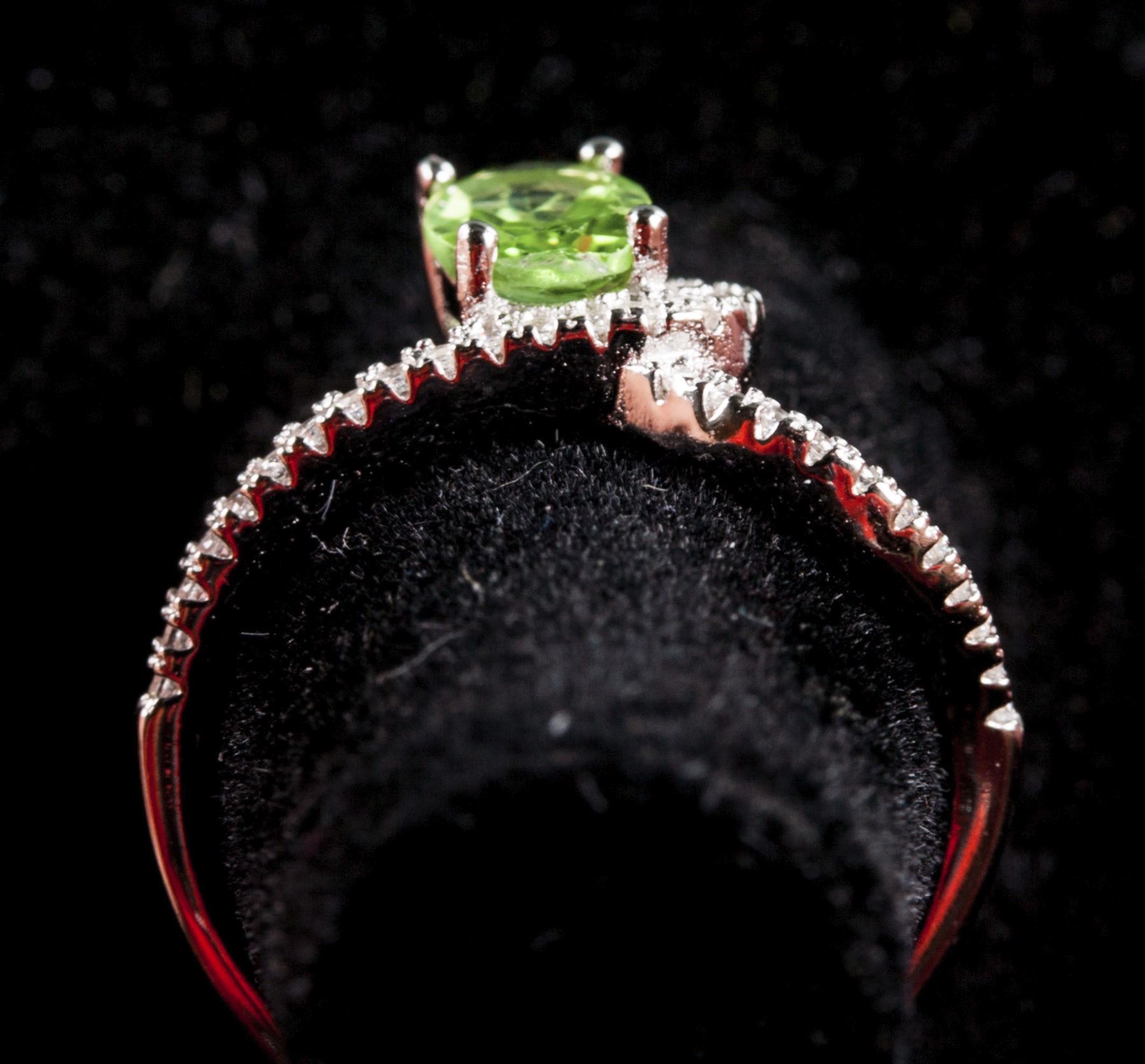 Two sterling silver rings; set with August birthstone peridot; retail value $220; D:1.6 cm, 1.93 grams, D: 1.8 cm, 2.71 grams