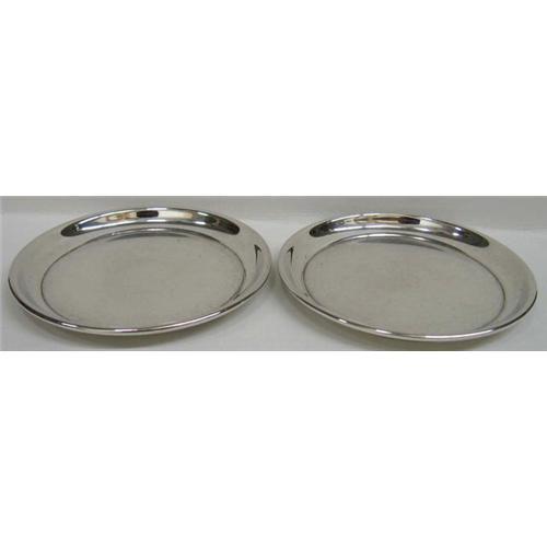 Two plates 3 3/4 inches in diameter. Very lovely. Simple and elegant. 100% sterling silver. No dents or monograms. Beautiful gift for Christmas.