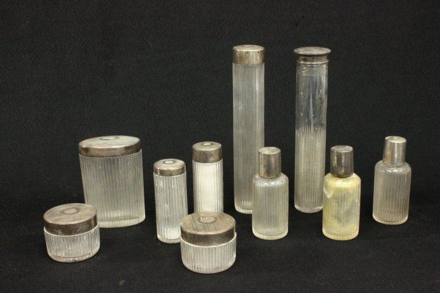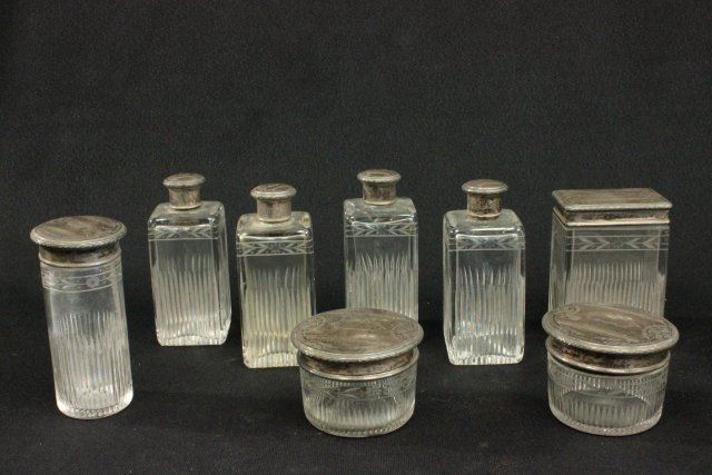 Crystal etched, 9 pieces. From a NYC collector's 40 year compilation.
