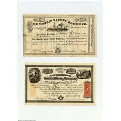 Two Stock Certificates.<p>New York & Maine General Mining Co. April, 1869, and The Morris Safety Boiler Co. Nov. 1872. 2 items Important notice: We expect to be auctioning lots at the rate of 200-250 per hour. Sometimes eBay Premier live bid software cannot keep up with that pace, so we strongly recommend that you place a realistic proxy bid now as insurance to avoid disappointment. Also please note that all Heritage/CAA lots purchased through eBay Premier carry a 20% Buyer's Premium.