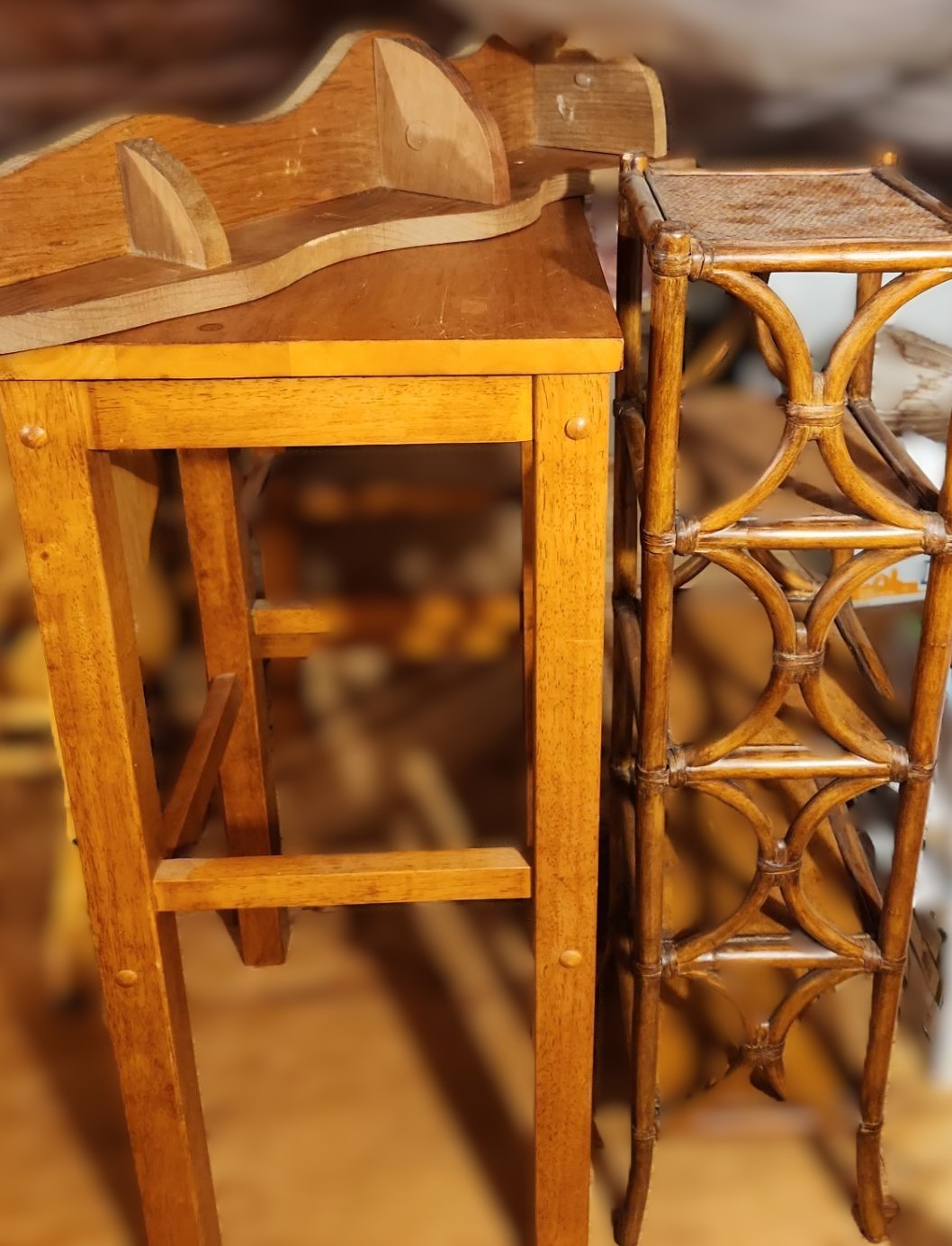 Two Stools 14 W, 13 D, 30 T, Small Corner Shelving 24 T, Display Shelf 9 W, 9 D, 32 T