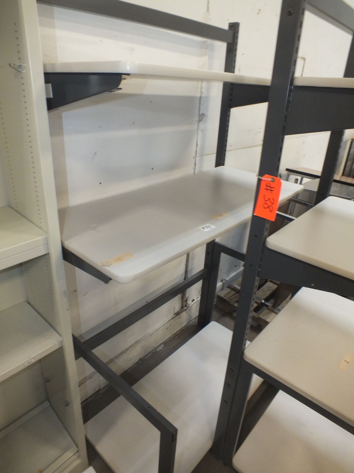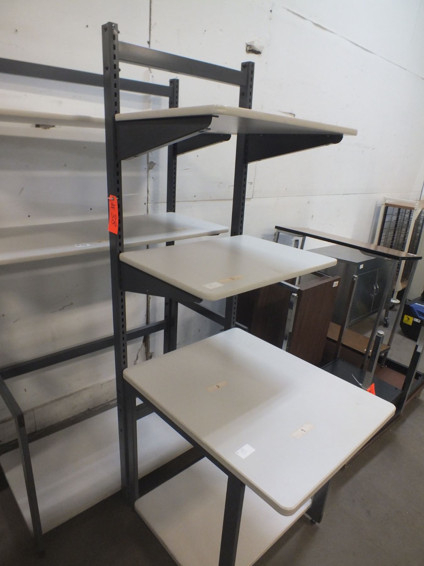 Two Storage Shelves & 2 Small Tables...sold as is / where is...used