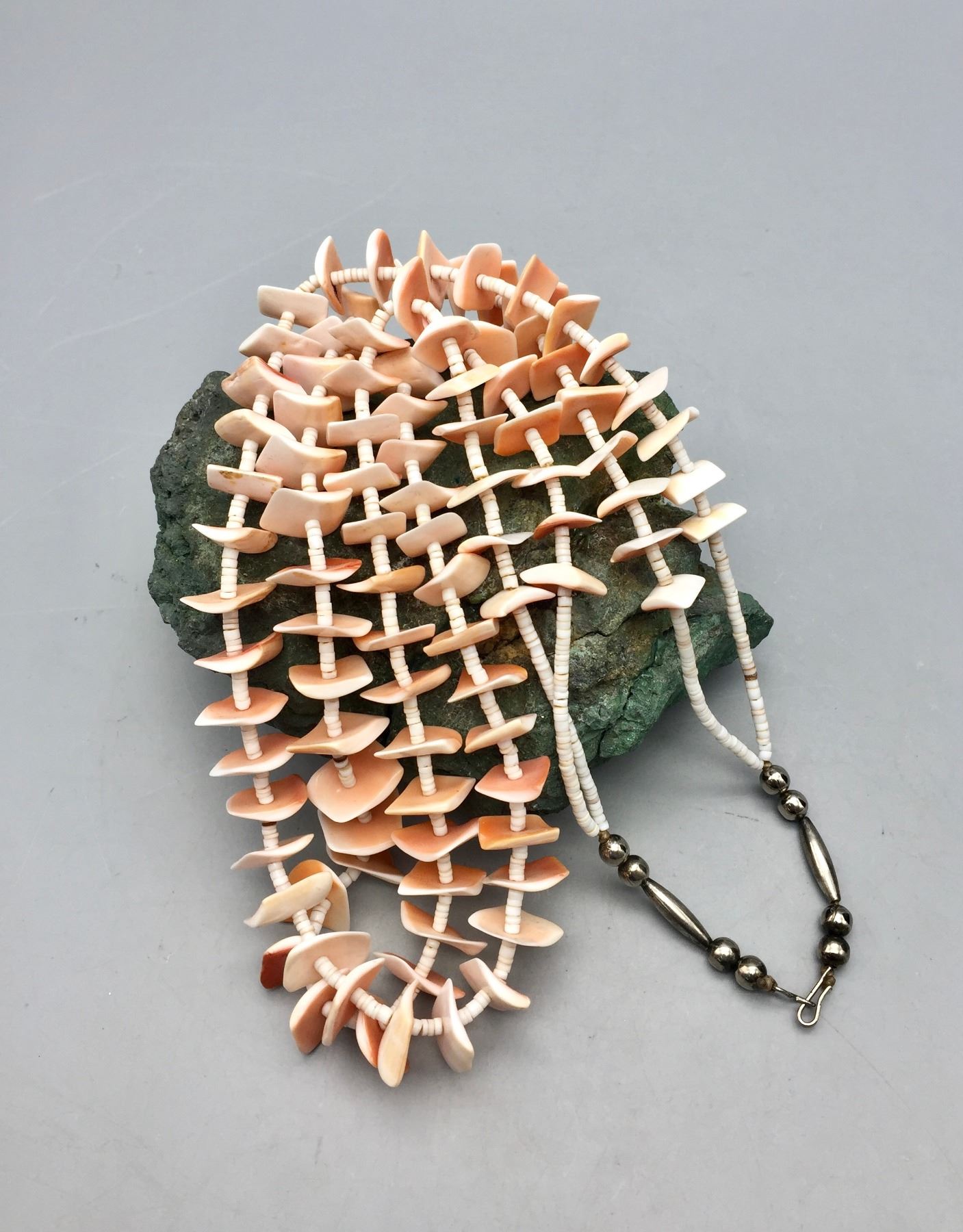 Description: Offered for sale in this lot is a very nice, two strand shell necklace with sterling silver findings. Maker: Unknown. Approx. Age: Vintage. Size: Fits a 28” neck. Weighs 130 grams. Condition: Good for its age, normal wear expected. Please look closely at the pictures - they are an important part of our description. Shipping: There will be a $5 handling / packaging fee for shipping this lot. The actual cost of postage will be added on top of that.