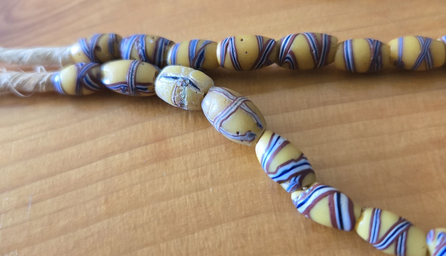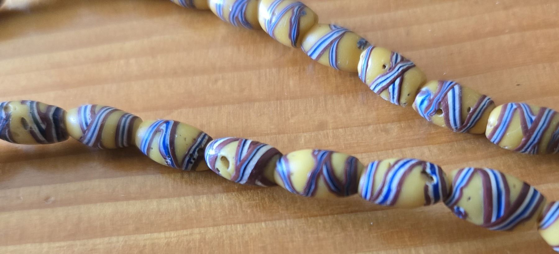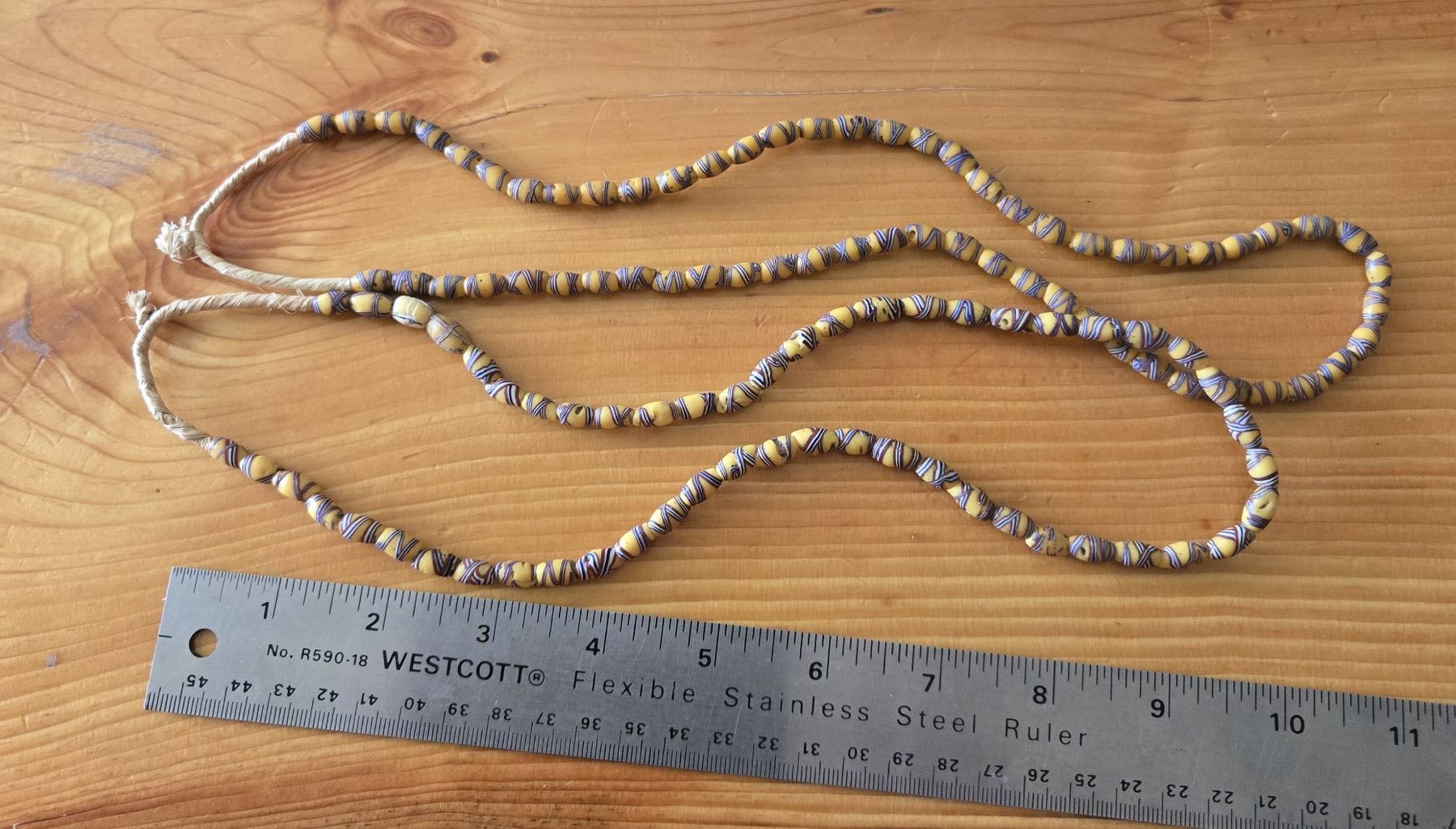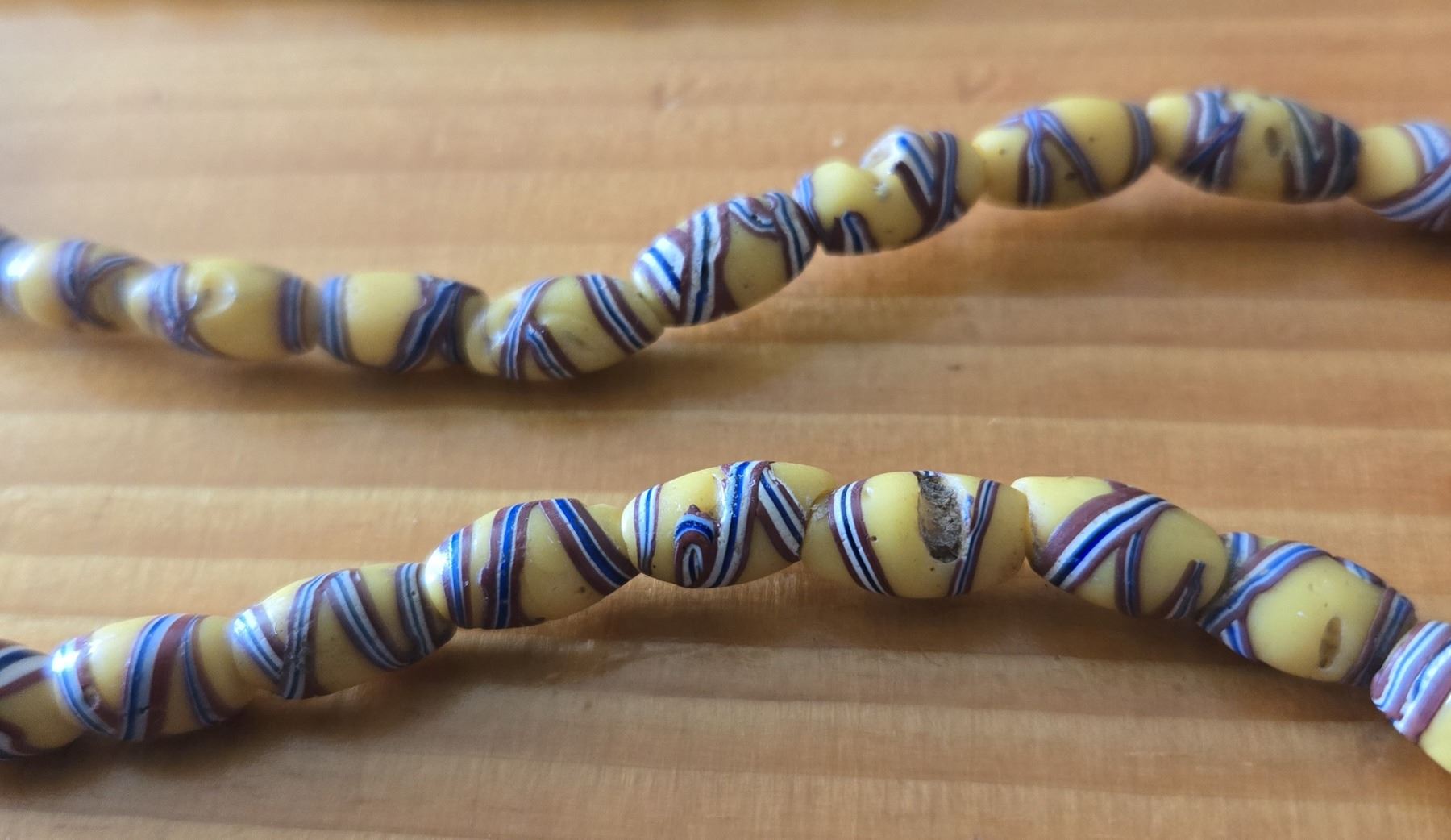 Two Strands of French Cross Venetian Trade Beads. One strand measures 22” and the other measures 21” in length. Each bead measure approximately 5 mm in diameter.