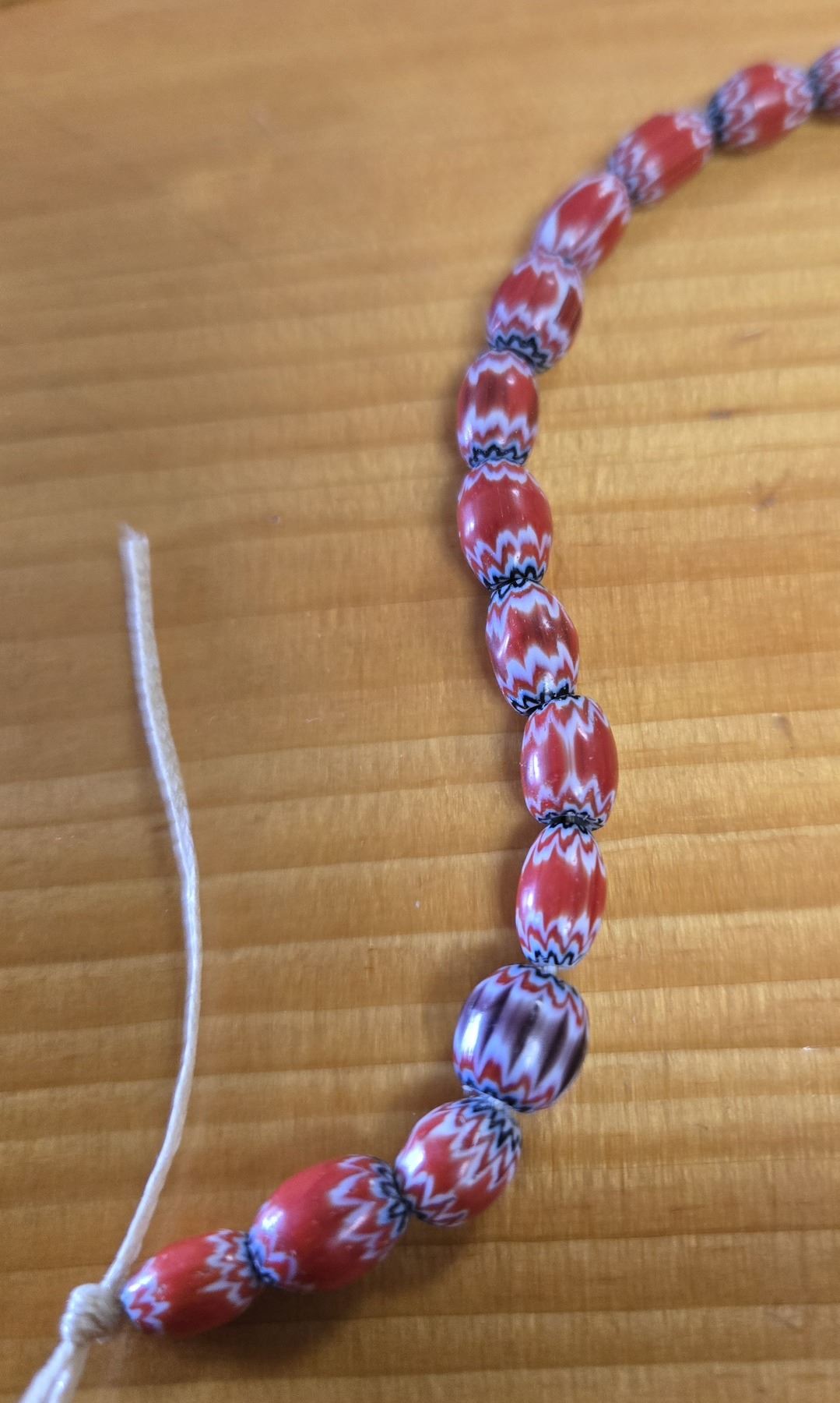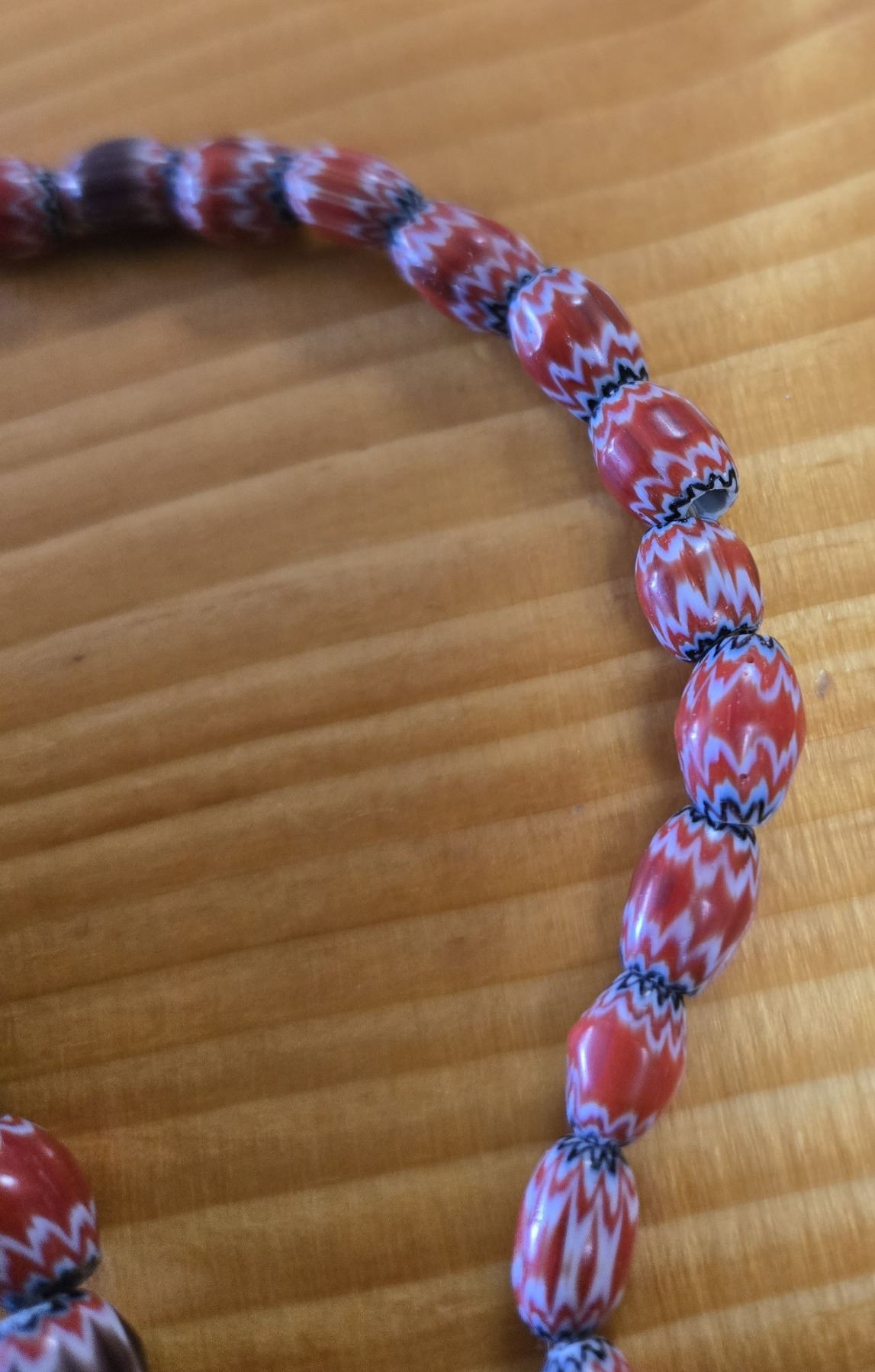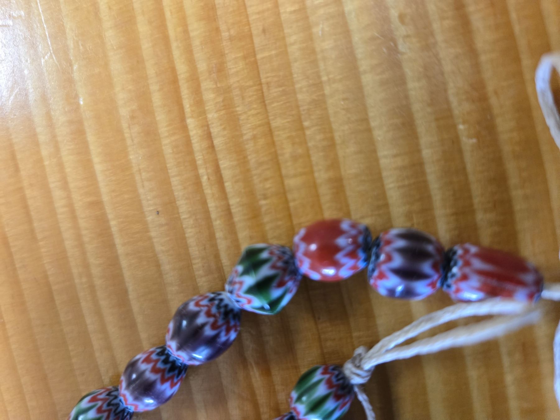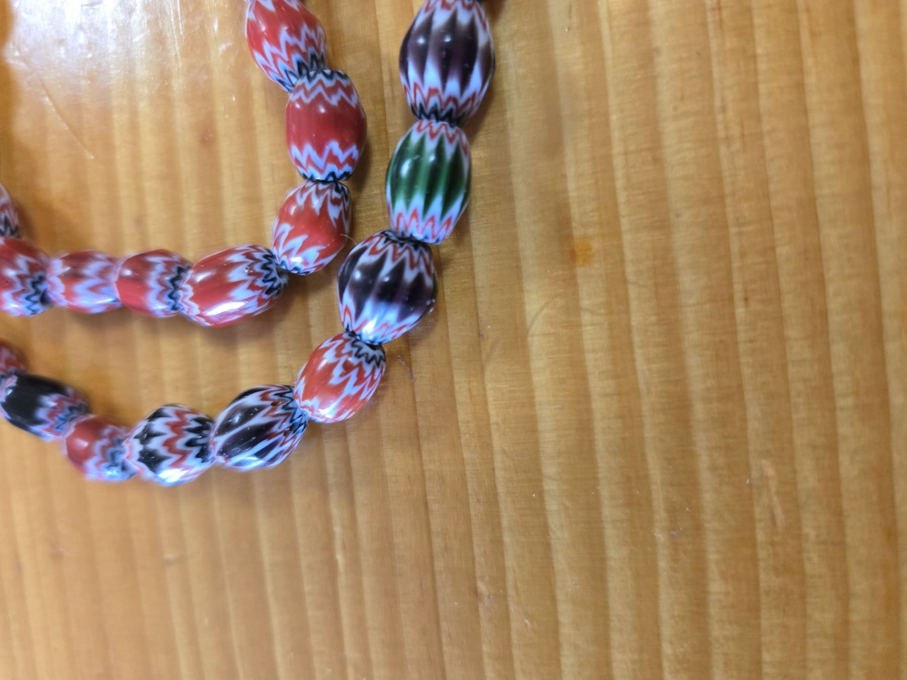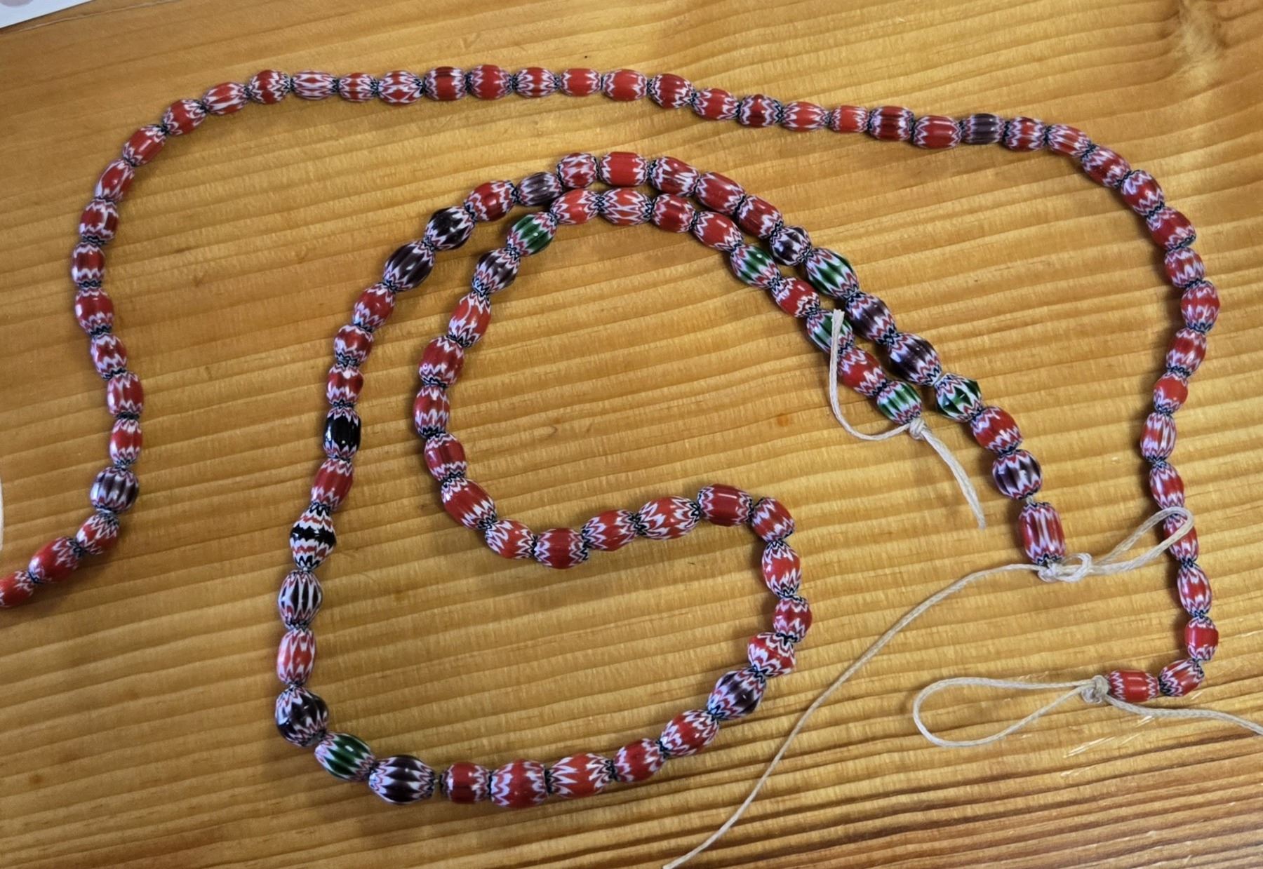 Two Strands of Vintage Chevron Trade Beads. One strand measures 22”” in length with beads that measure approximately 8 mm in diameter and second strand measures 16” with beads that measure approximately 6 mm in diameter.