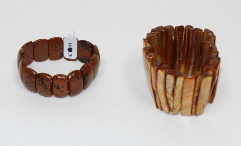 2 Stretch Bracelets, 1 Mother Of Pearl,1 Brown Leopard Agate