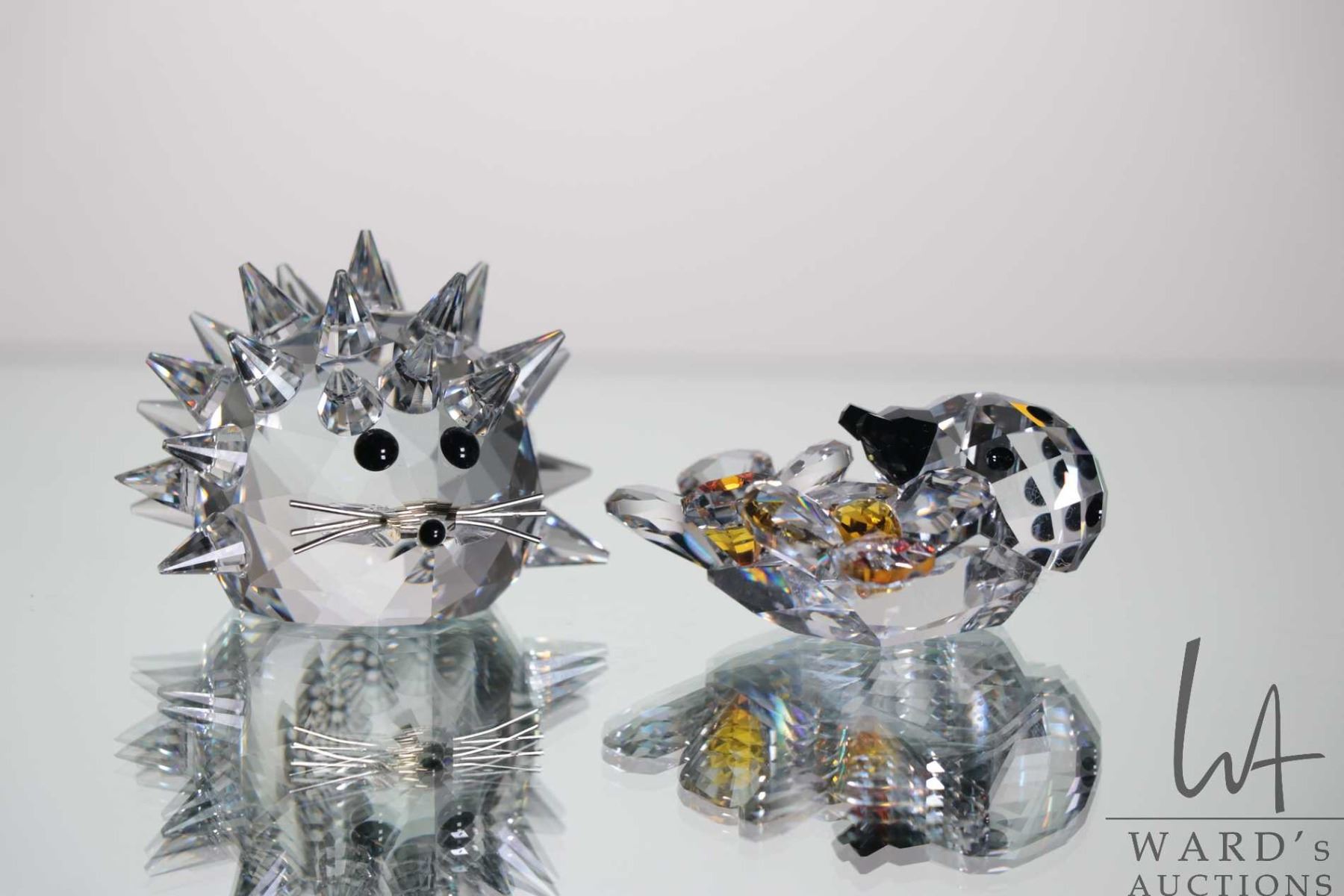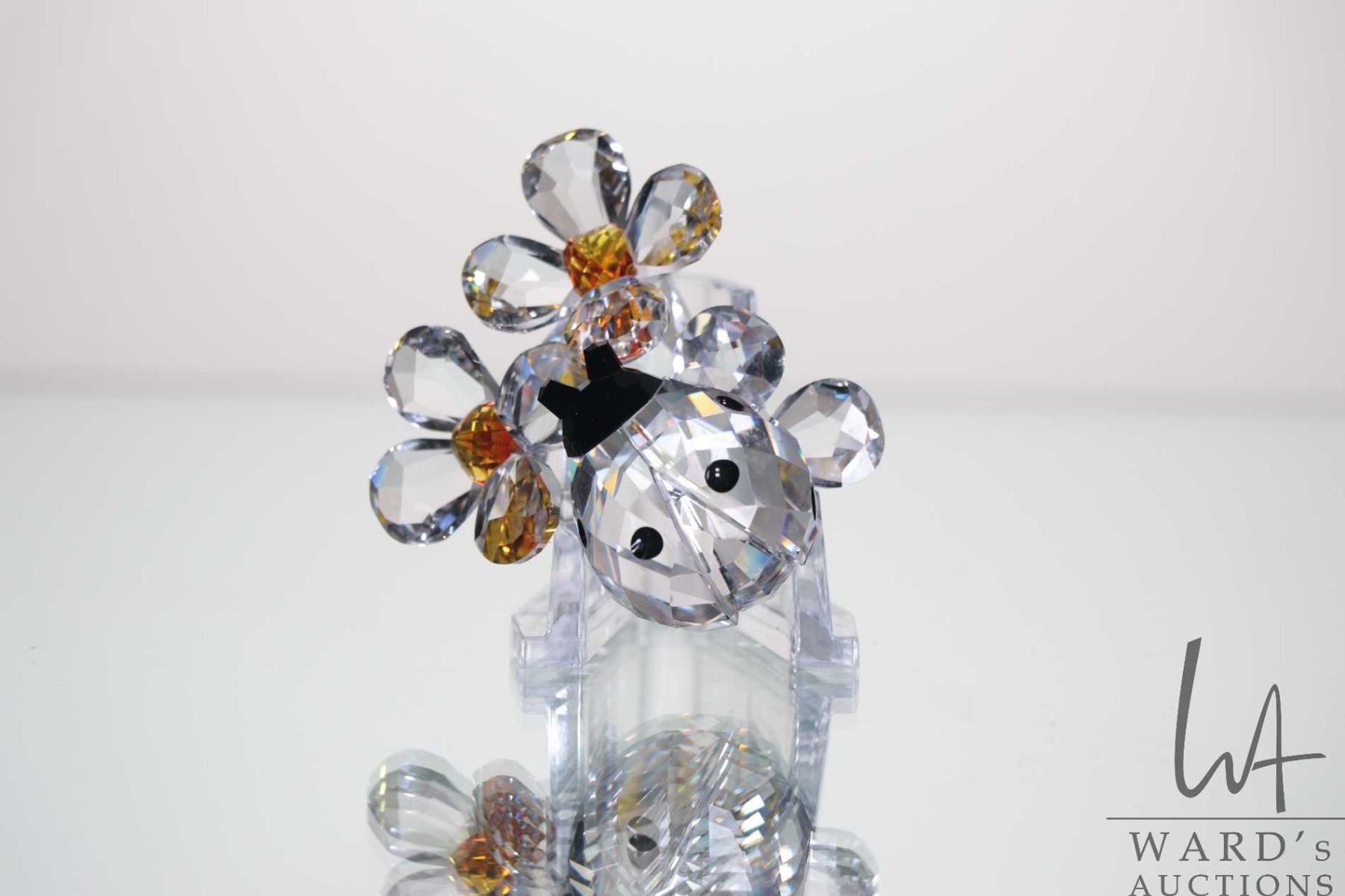 Two Swarovski crystal figures including porcupine and a lady bug with flowers