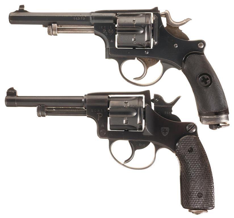 Two Swiss Double Action Revolvers with Holsters -A) Swiss Model 1882 Revolver with Holster and Shoulder Strap