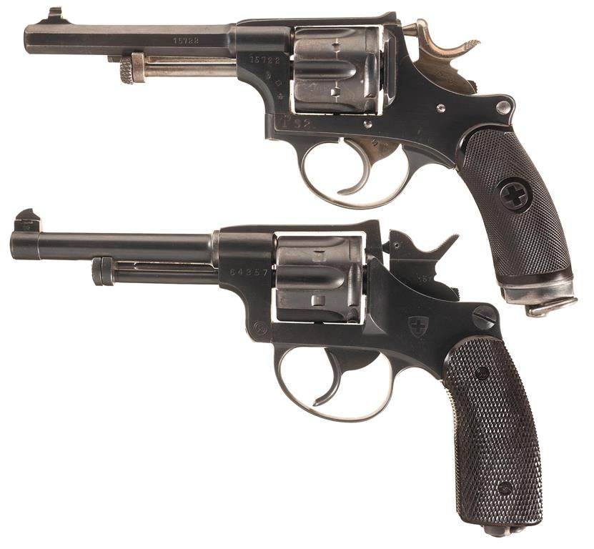 Two Swiss Double Action Revolvers with Holsters -A) Swiss Model 1882 Revolver with Holster and Shoulder Strap