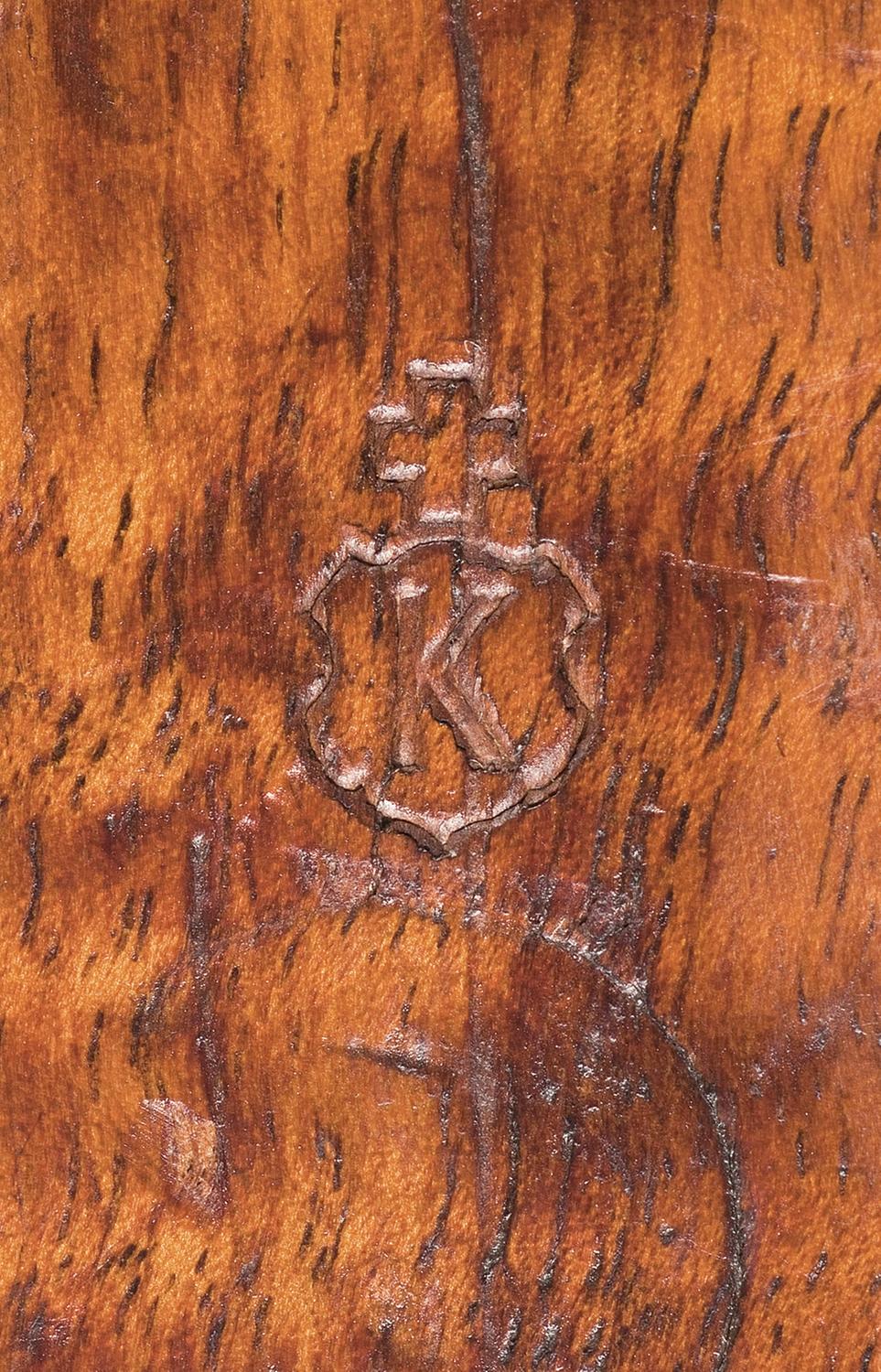 Blade front sight and rear sight graduated to 1,200 meters. Buttplate, barrel, trigger, rear sight, and cartridge elevator numbered to gun. The stock has a boxed "D8+CI" stamped on the comb and a "M" cartouche on the buttstock.