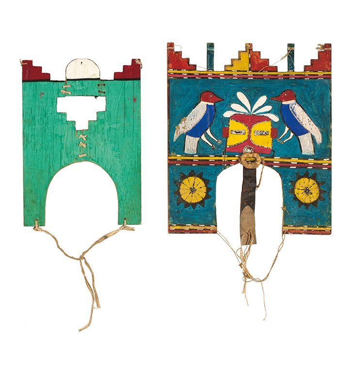 Rio Grande Pueblo | Media: Wood, leather and string |Dimensions from left to right: 10 by 14, 14 by 16.5 inches